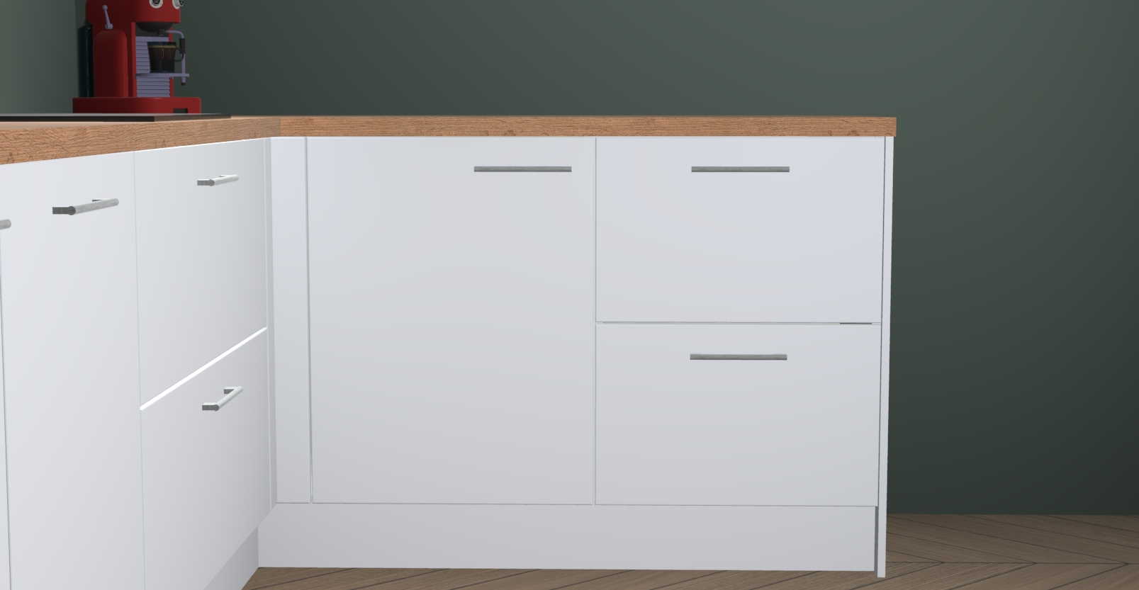 De Sneeuwwitte keuken Lille wordt geleverd met vijf inbouwapparaten - een oven, inductiekookplaat, afzuigkap, vaatwasser en koelkast. Maar dat is nog niet alles! Na bestelling kunnen deze apparaten eenvoudig worden geüpgraded naar premium AEG-apparatuur. Bovendien is er zelfs de optie om de oven te vervangen door een combimagnetron of uw inductiekookplaat te vervangen door een kookplaat met geïntegreerde afzuiging.