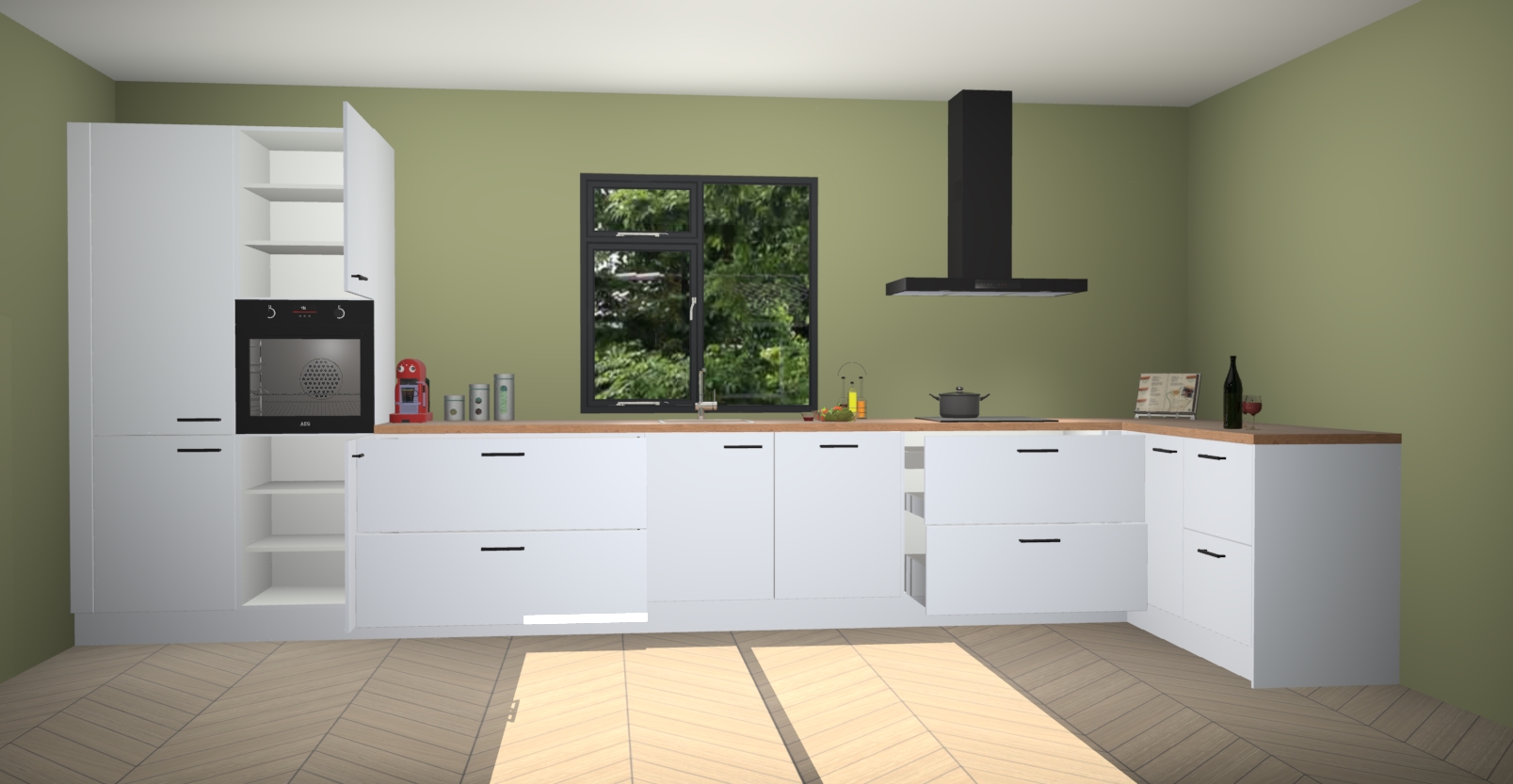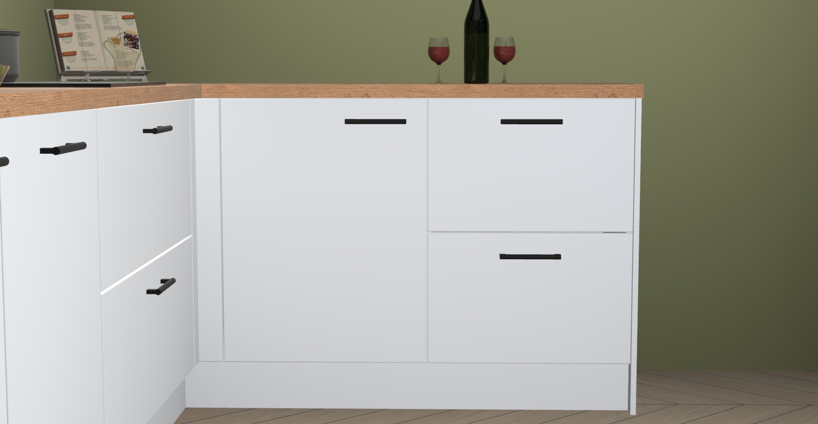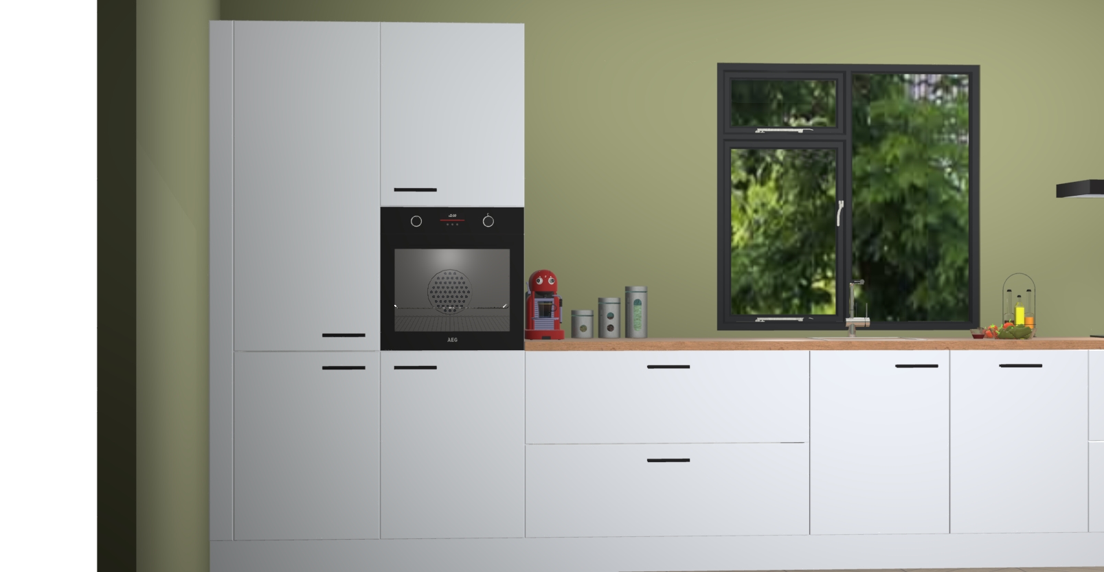 De Sneeuwwitte keuken Lille wordt geleverd met vijf inbouwapparaten - een oven, inductiekookplaat, afzuigkap, vaatwasser en koelkast. Maar dat is nog niet alles! Na bestelling kunnen deze apparaten eenvoudig worden geüpgraded naar premium AEG-apparatuur. Bovendien is er zelfs de optie om de oven te vervangen door een combimagnetron of uw inductiekookplaat te vervangen door een kookplaat met geïntegreerde afzuiging.