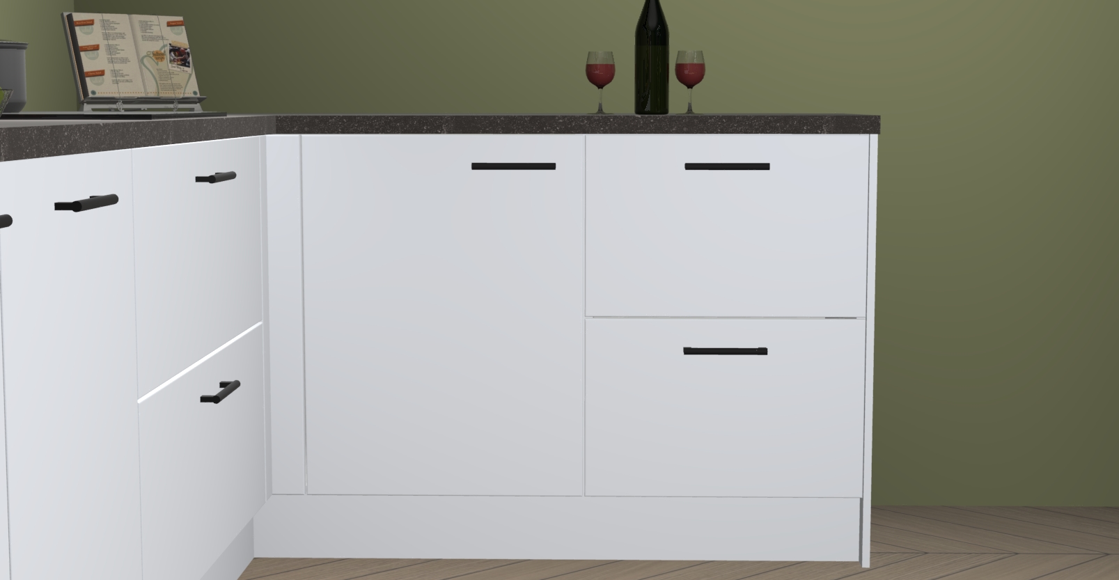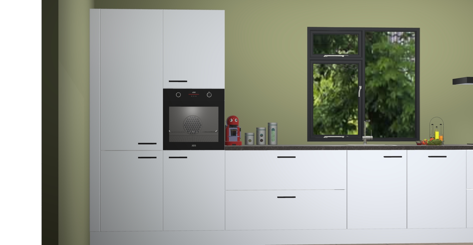 De Sneeuwwitte keuken Lille wordt geleverd met vijf inbouwapparaten - een oven, inductiekookplaat, afzuigkap, vaatwasser en koelkast. Maar dat is nog niet alles! Na bestelling kunnen deze apparaten eenvoudig worden geüpgraded naar premium AEG-apparatuur. Bovendien is er zelfs de optie om de oven te vervangen door een combimagnetron of uw inductiekookplaat te vervangen door een kookplaat met geïntegreerde afzuiging.