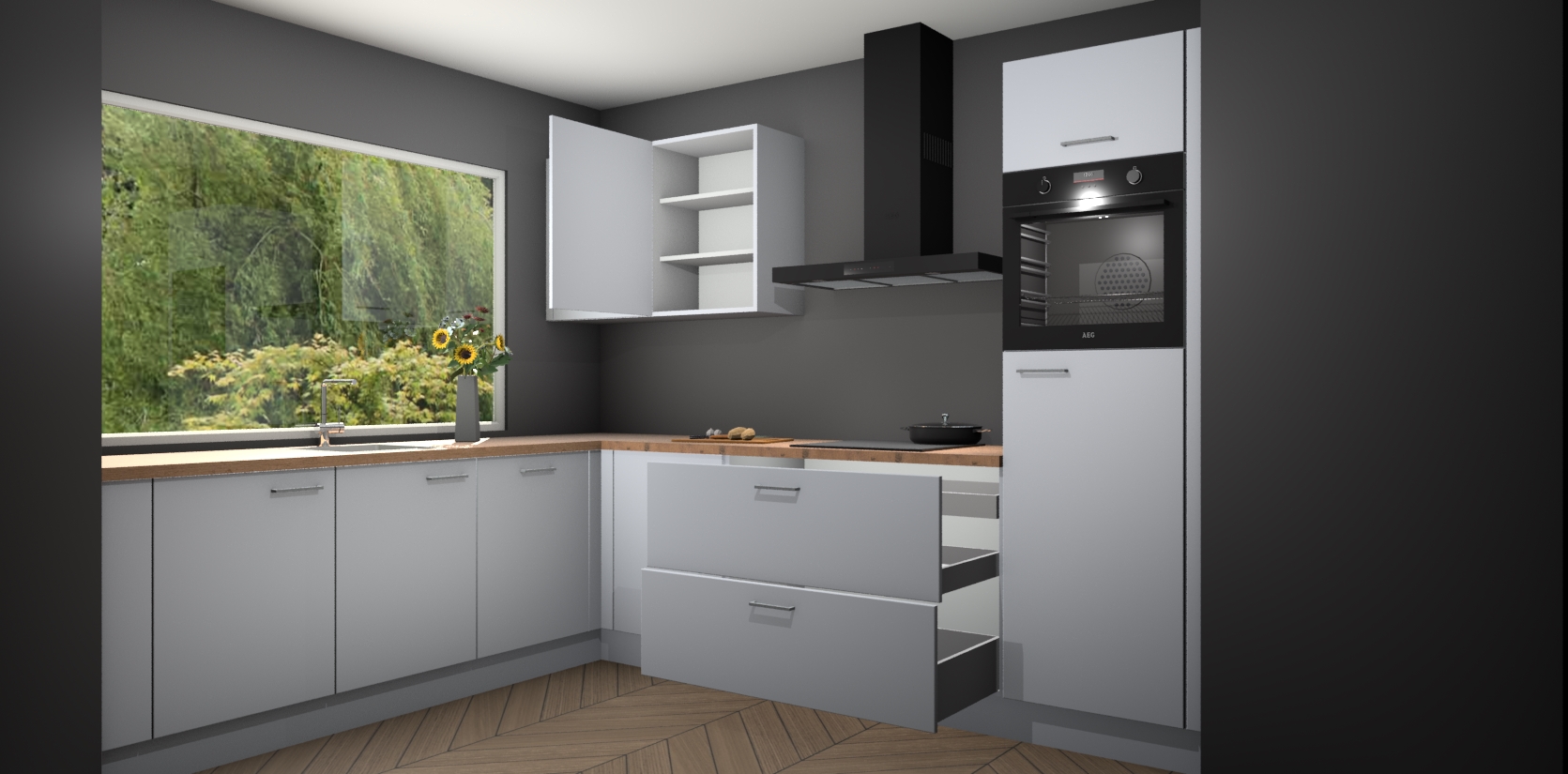 In deze box zijn alle kleuren verzameld van de deuren en werkbladen. Vraag de gratis kleurenbox aan en kijk thuis rustig verder!