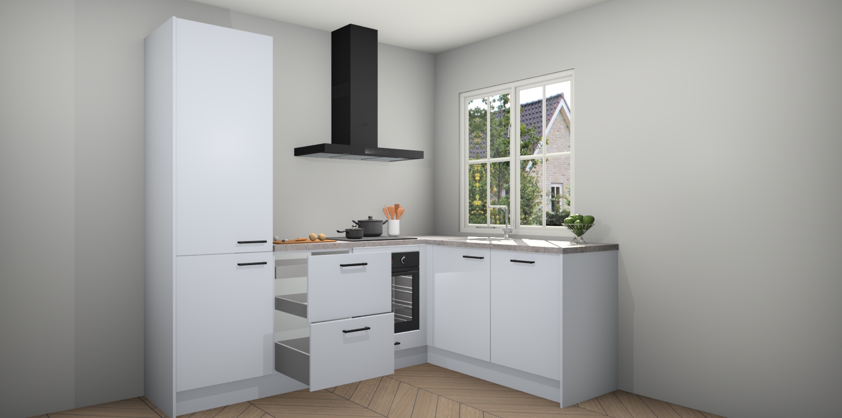 Inclusief plinten, stelpoten en werkblad