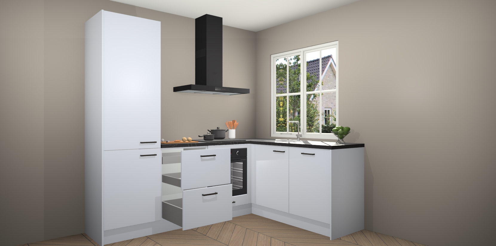 Inclusief plinten, stelpoten en werkblad