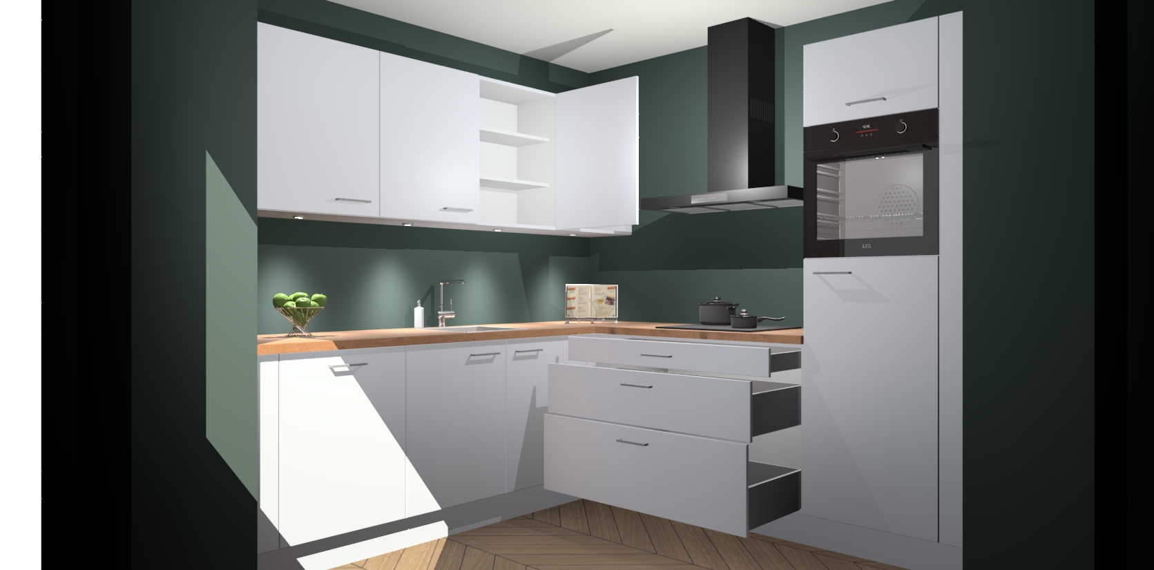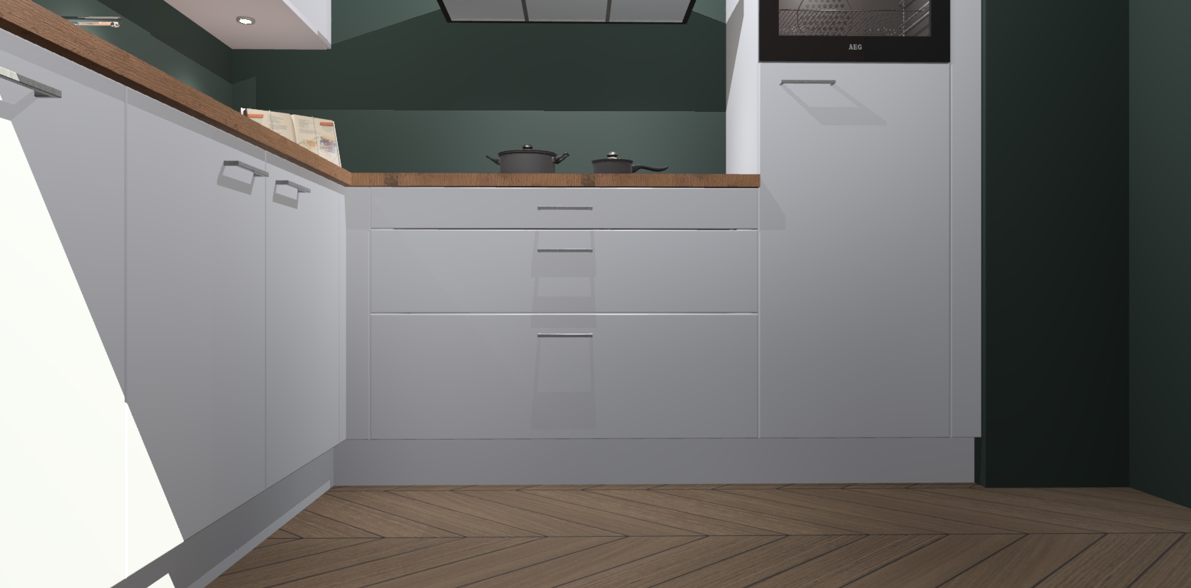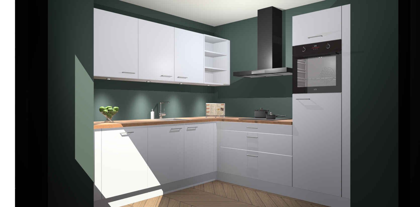 Met een modern, tijdloos design en ruime opslagruimte, zult u zich in no-time thuis voelen in uw nieuwe keuken. Uw leven wordt eenvoudiger met de soft-close deuren die voor het ultieme stille comfort zorgen - geen geluid dat u stoort terwijl u kookt. Ook is de keuken voorzien van 5 ingebouwde apparaten: een oven, inductie kookplaat, afzuigkap, vaatwasser en koelkast. Deze kunnen gemakkelijk na bestelling worden bijgewerkt naar AEG - waardoor uw luxe ervaring compleet is.