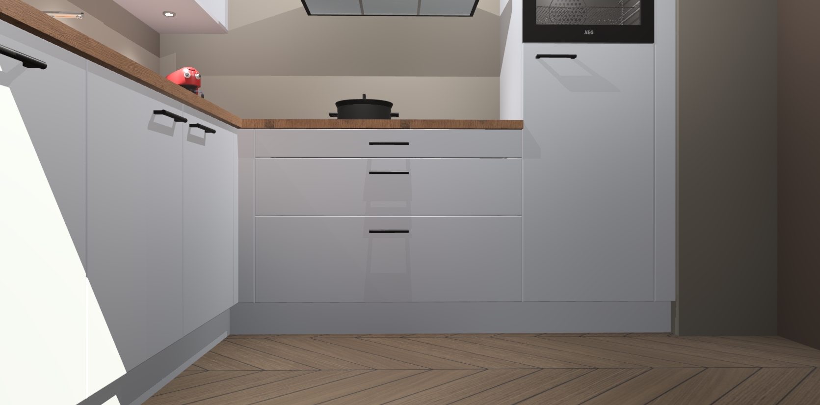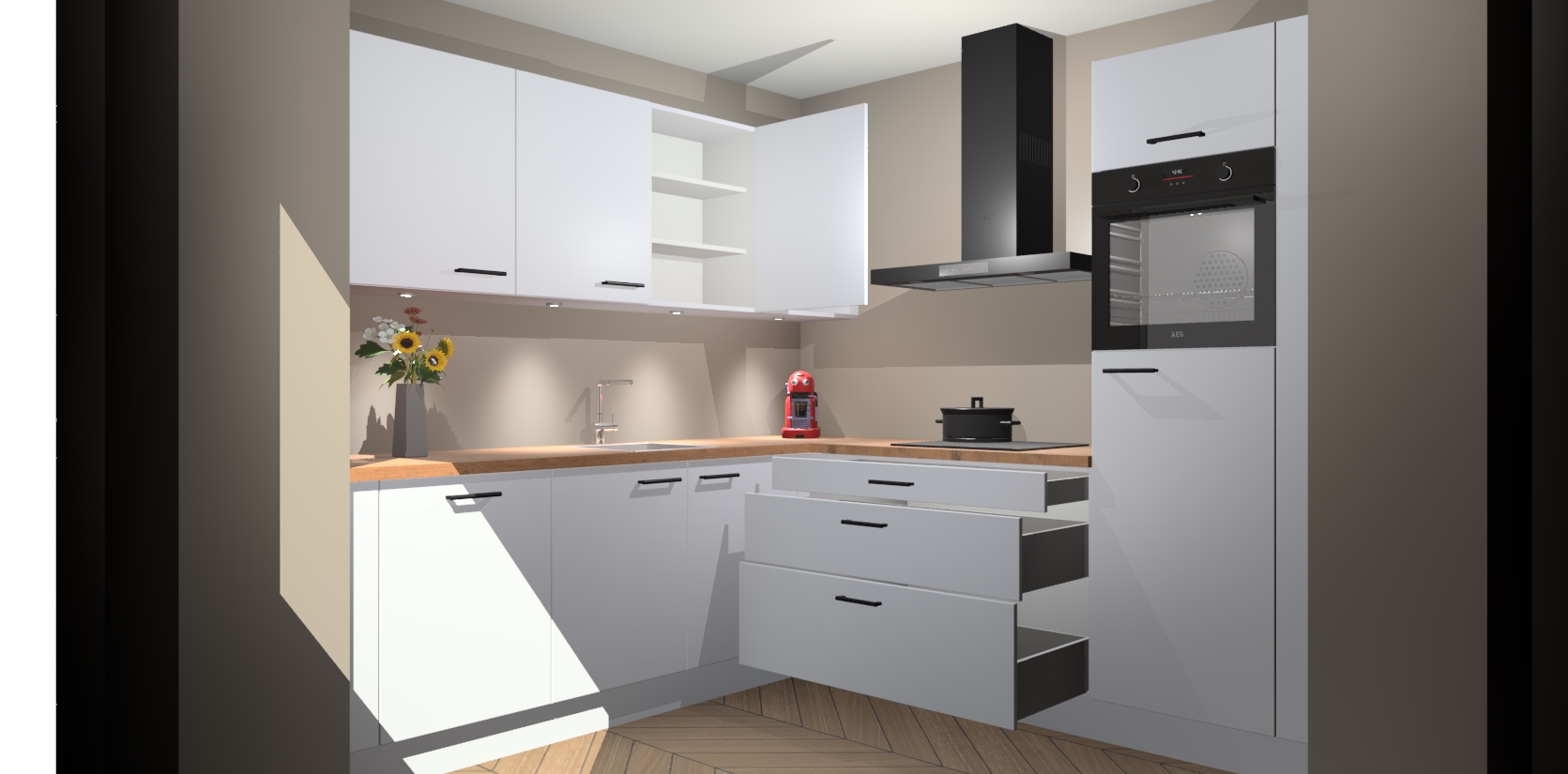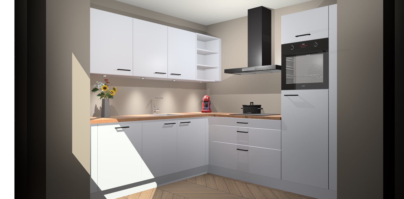 Met een modern, tijdloos design en ruime opslagruimte, zult u zich in no-time thuis voelen in uw nieuwe keuken. Uw leven wordt eenvoudiger met de soft-close deuren die voor het ultieme stille comfort zorgen - geen geluid dat u stoort terwijl u kookt. Ook is de keuken voorzien van 5 ingebouwde apparaten: een oven, inductie kookplaat, afzuigkap, vaatwasser en koelkast. Deze kunnen gemakkelijk na bestelling worden bijgewerkt naar AEG - waardoor uw luxe ervaring compleet is.