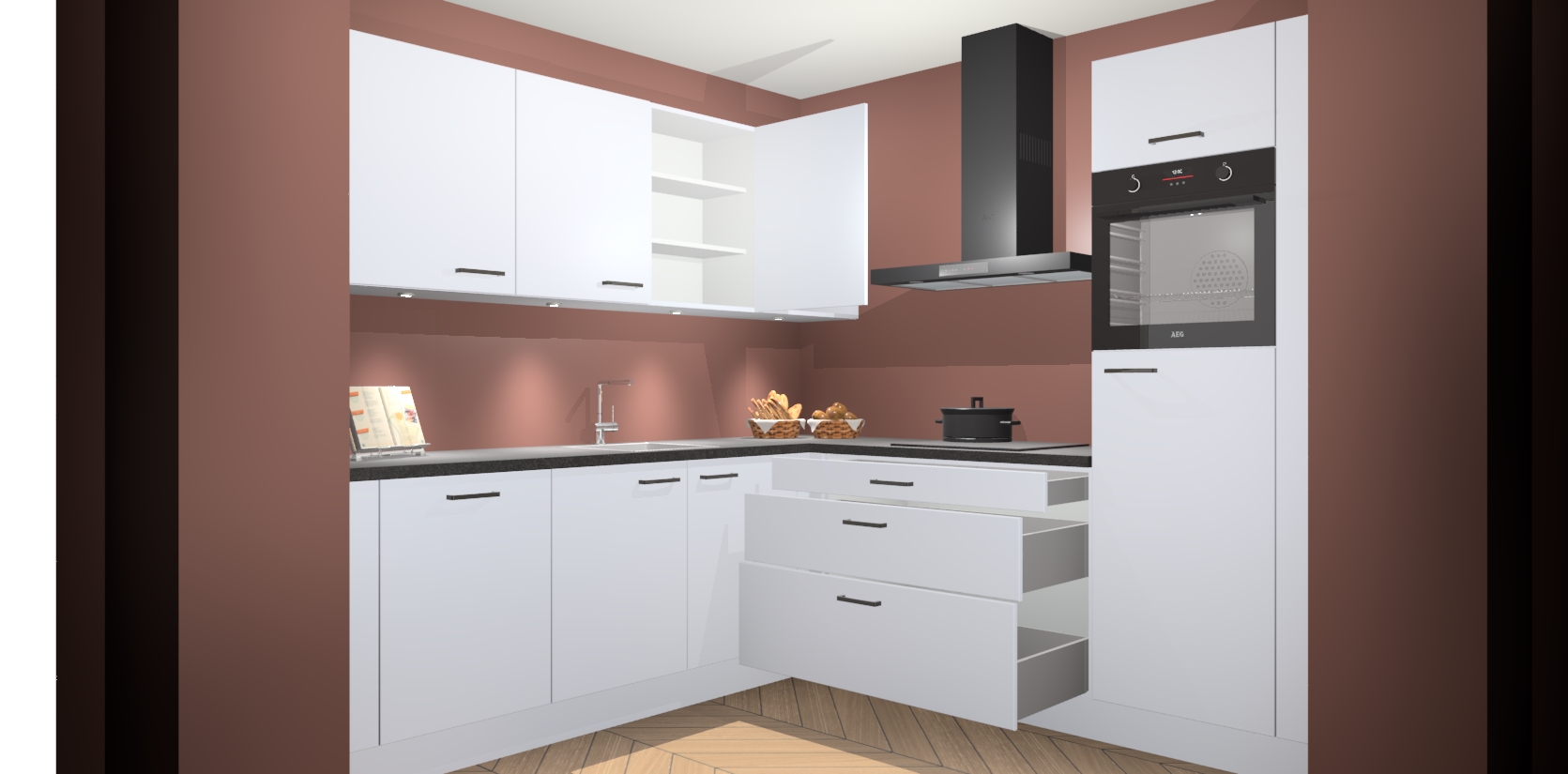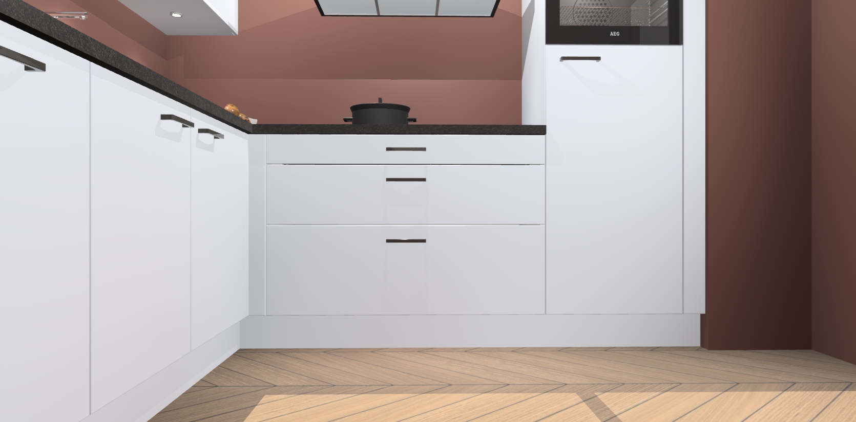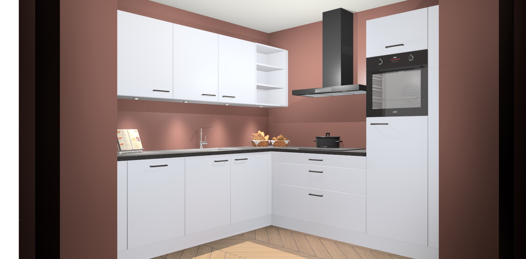 Met een modern, tijdloos design en ruime opslagruimte, zult u zich in no-time thuis voelen in uw nieuwe keuken. Uw leven wordt eenvoudiger met de soft-close deuren die voor het ultieme stille comfort zorgen - geen geluid dat u stoort terwijl u kookt. Ook is de keuken voorzien van 5 ingebouwde apparaten: een oven, inductie kookplaat, afzuigkap, vaatwasser en koelkast. Deze kunnen gemakkelijk na bestelling worden bijgewerkt naar AEG - waardoor uw luxe ervaring compleet is.