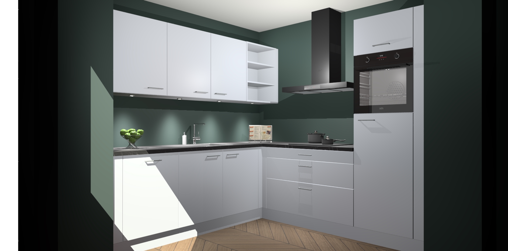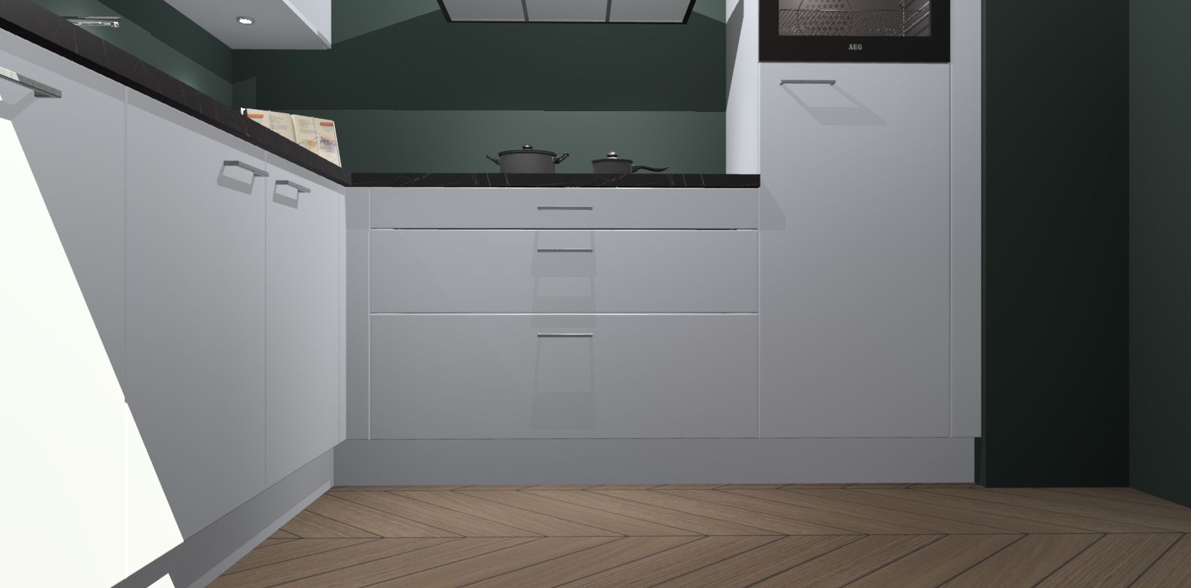 Met een modern, tijdloos design en ruime opslagruimte, zult u zich in no-time thuis voelen in uw nieuwe keuken. Uw leven wordt eenvoudiger met de soft-close deuren die voor het ultieme stille comfort zorgen - geen geluid dat u stoort terwijl u kookt. Ook is de keuken voorzien van 5 ingebouwde apparaten: een oven, inductie kookplaat, afzuigkap, vaatwasser en koelkast. Deze kunnen gemakkelijk na bestelling worden bijgewerkt naar AEG - waardoor uw luxe ervaring compleet is.