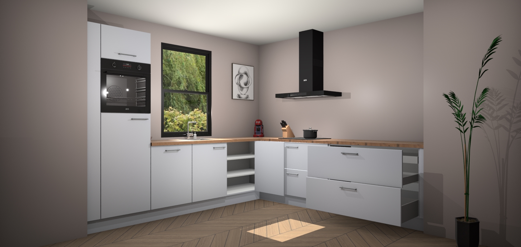 Inclusief plinten, stelpoten en werkblad