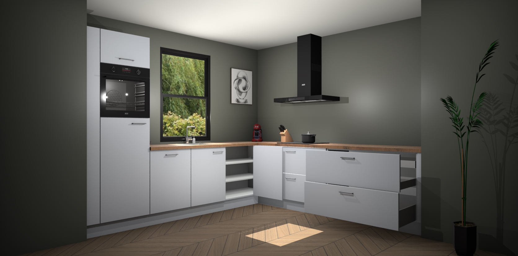 Inclusief plinten, stelpoten en werkblad