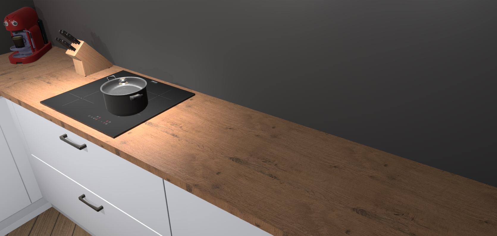 • Bij een hoekwerkblad zijn de hoeken in gevreesd en op maat gemaakt