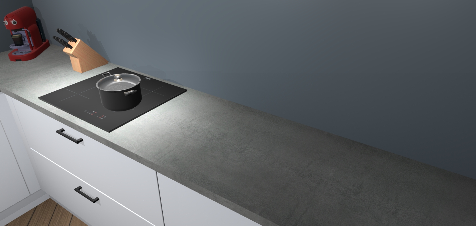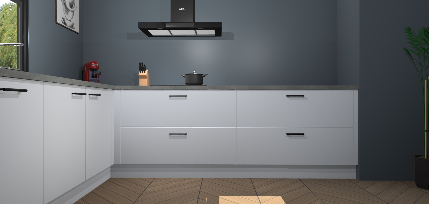 Inclusief plinten, stelpoten en werkblad