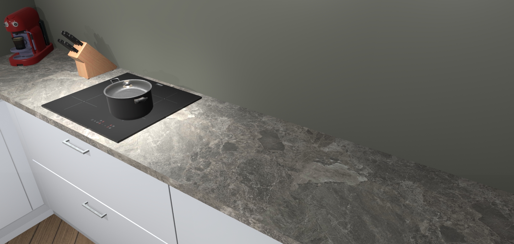 In deze box zijn alle kleuren verzameld van de deuren en werkbladen. Vraag de gratis kleurenbox aan en kijk thuis rustig verder!