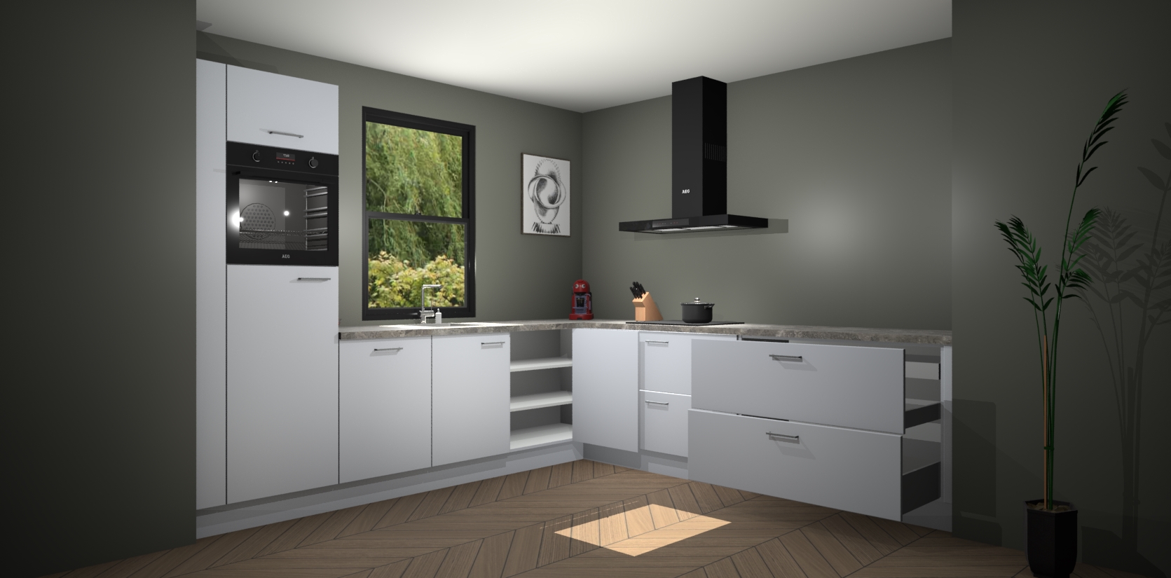 Inclusief plinten, stelpoten en werkblad