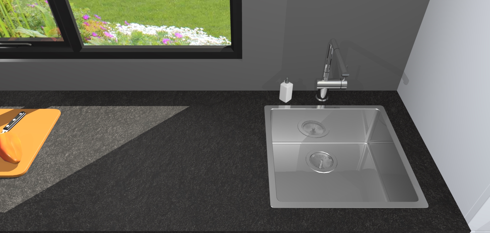- De spoelbak is nog niet in gevreesd. Dit dient tijdens het werk gedaan te worden