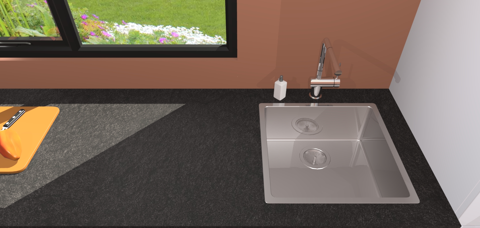 - De spoelbak is nog niet in gevreesd. Dit dient tijdens het werk gedaan te worden