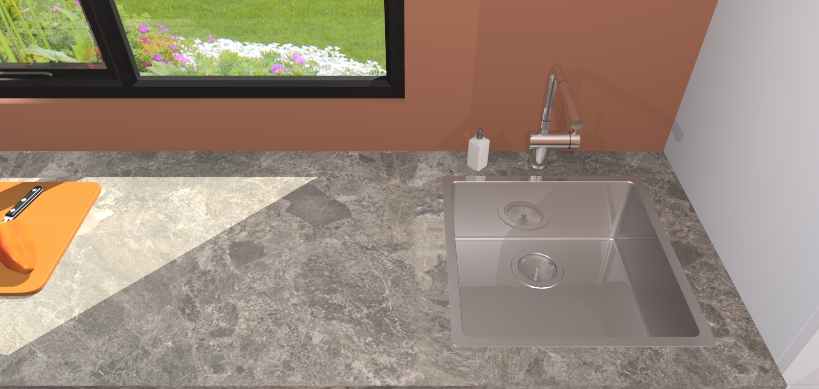 - De spoelbak is nog niet in gevreesd. Dit dient tijdens het werk gedaan te worden