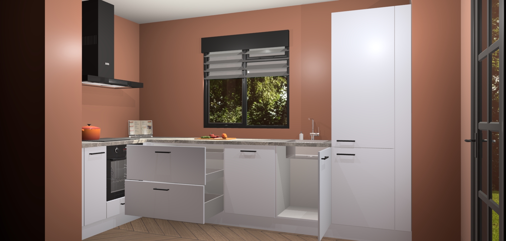 In deze box zijn alle kleuren verzameld van de deuren en werkbladen. Vraag de gratis kleurenbox aan en kijk thuis rustig verder!