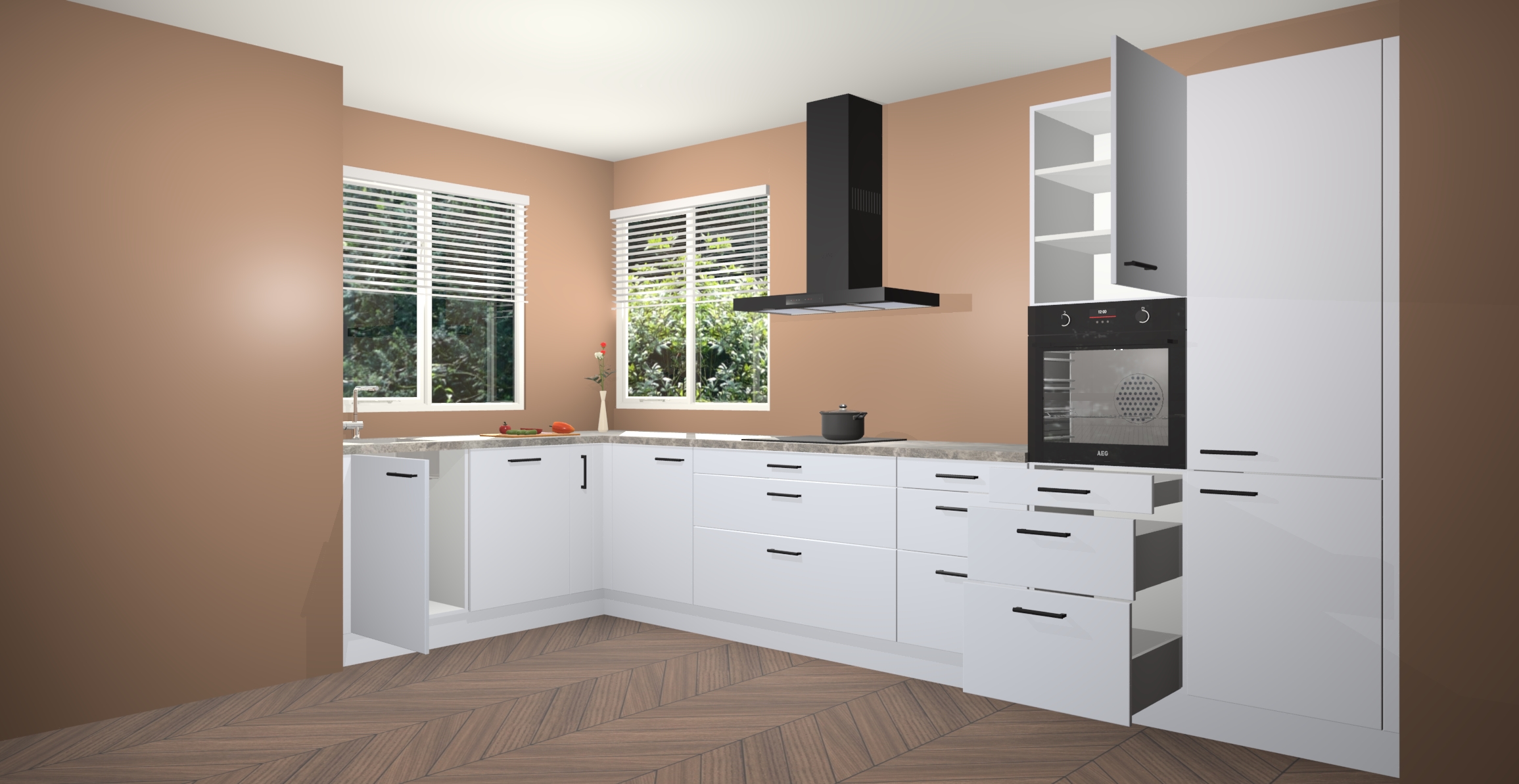 In deze box zijn alle kleuren verzameld van de deuren en werkbladen. Vraag de gratis kleurenbox aan en kijk thuis rustig verder!