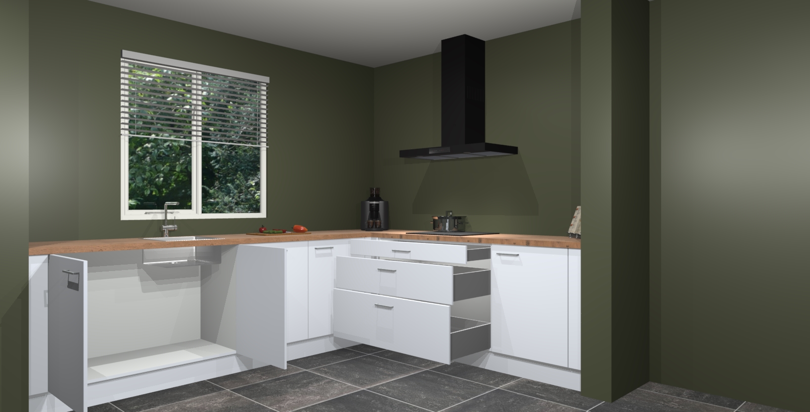 - Bij een hoekwerkblad zijn de hoeken in gevreesd en op maat gemaakt
