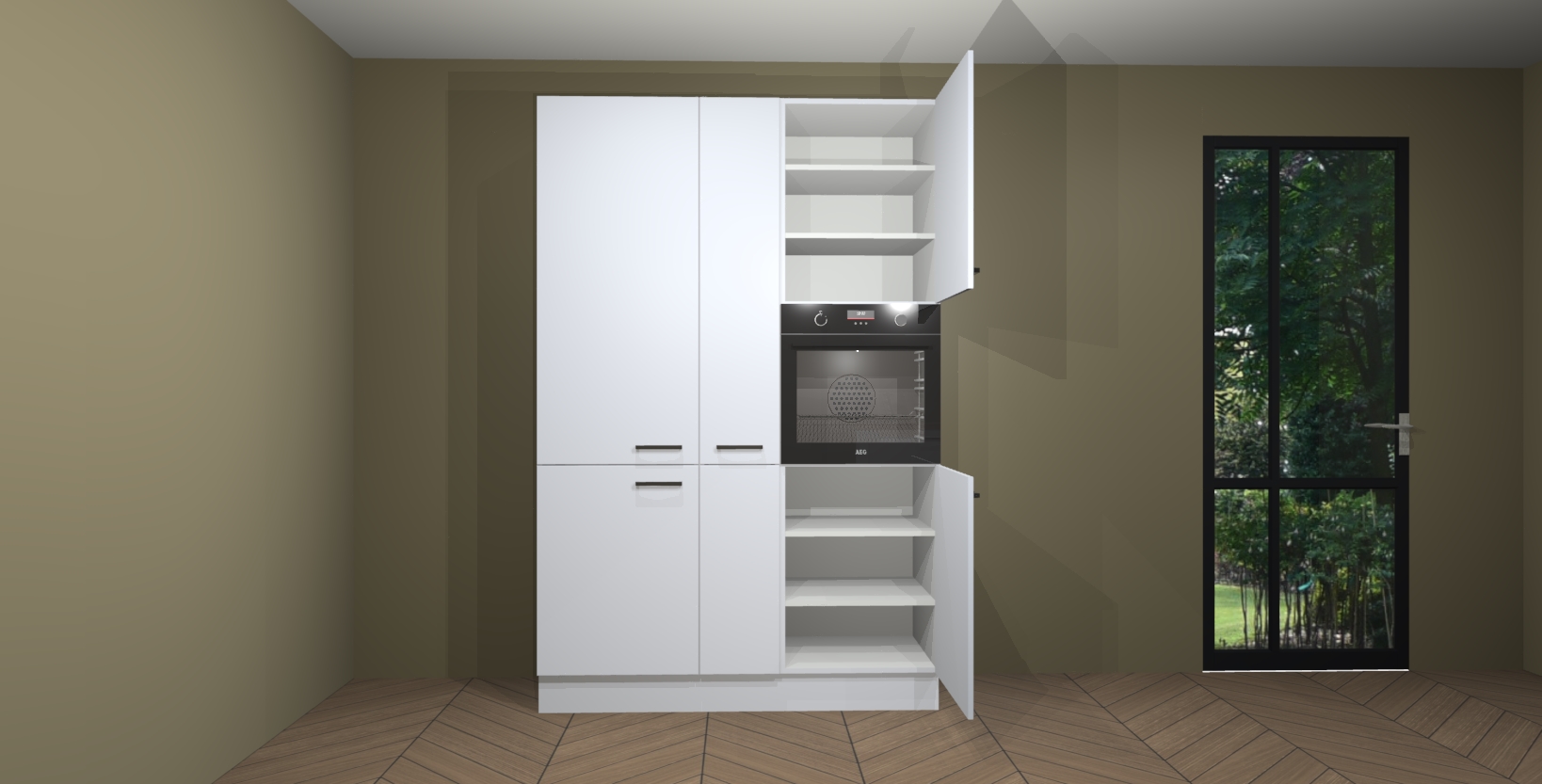 Met een modern, tijdloos design en ruime opslagruimte, zult u zich in no-time thuis voelen in uw nieuwe keuken. Uw leven wordt eenvoudiger met de soft-close deuren die voor het ultieme stille comfort zorgen - geen geluid dat u stoort terwijl u kookt. Ook is de keuken voorzien van 5 ingebouwde apparaten: een oven, inductie kookplaat, afzuigkap, vaatwasser en koelkast. Deze kunnen gemakkelijk na bestelling worden bijgewerkt naar AEG - waardoor uw luxe ervaring compleet is.