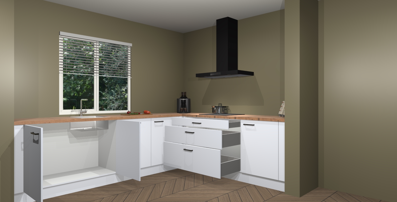 - Bij een hoekwerkblad zijn de hoeken in gevreesd en op maat gemaakt