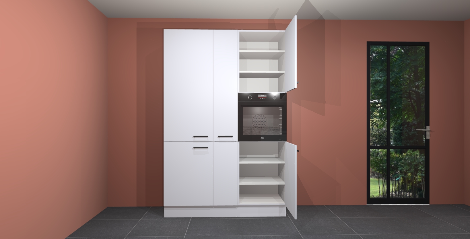 Met een modern, tijdloos design en ruime opslagruimte, zult u zich in no-time thuis voelen in uw nieuwe keuken. Uw leven wordt eenvoudiger met de soft-close deuren die voor het ultieme stille comfort zorgen - geen geluid dat u stoort terwijl u kookt. Ook is de keuken voorzien van 5 ingebouwde apparaten: een oven, inductie kookplaat, afzuigkap, vaatwasser en koelkast. Deze kunnen gemakkelijk na bestelling worden bijgewerkt naar AEG - waardoor uw luxe ervaring compleet is.