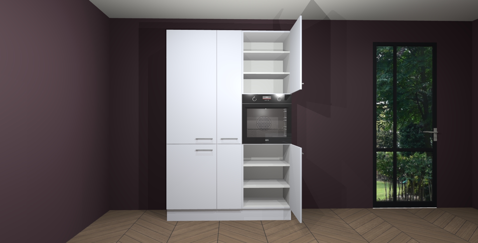 Met een modern, tijdloos design en ruime opslagruimte, zult u zich in no-time thuis voelen in uw nieuwe keuken. Uw leven wordt eenvoudiger met de soft-close deuren die voor het ultieme stille comfort zorgen - geen geluid dat u stoort terwijl u kookt. Ook is de keuken voorzien van 5 ingebouwde apparaten: een oven, inductie kookplaat, afzuigkap, vaatwasser en koelkast. Deze kunnen gemakkelijk na bestelling worden bijgewerkt naar AEG - waardoor uw luxe ervaring compleet is.