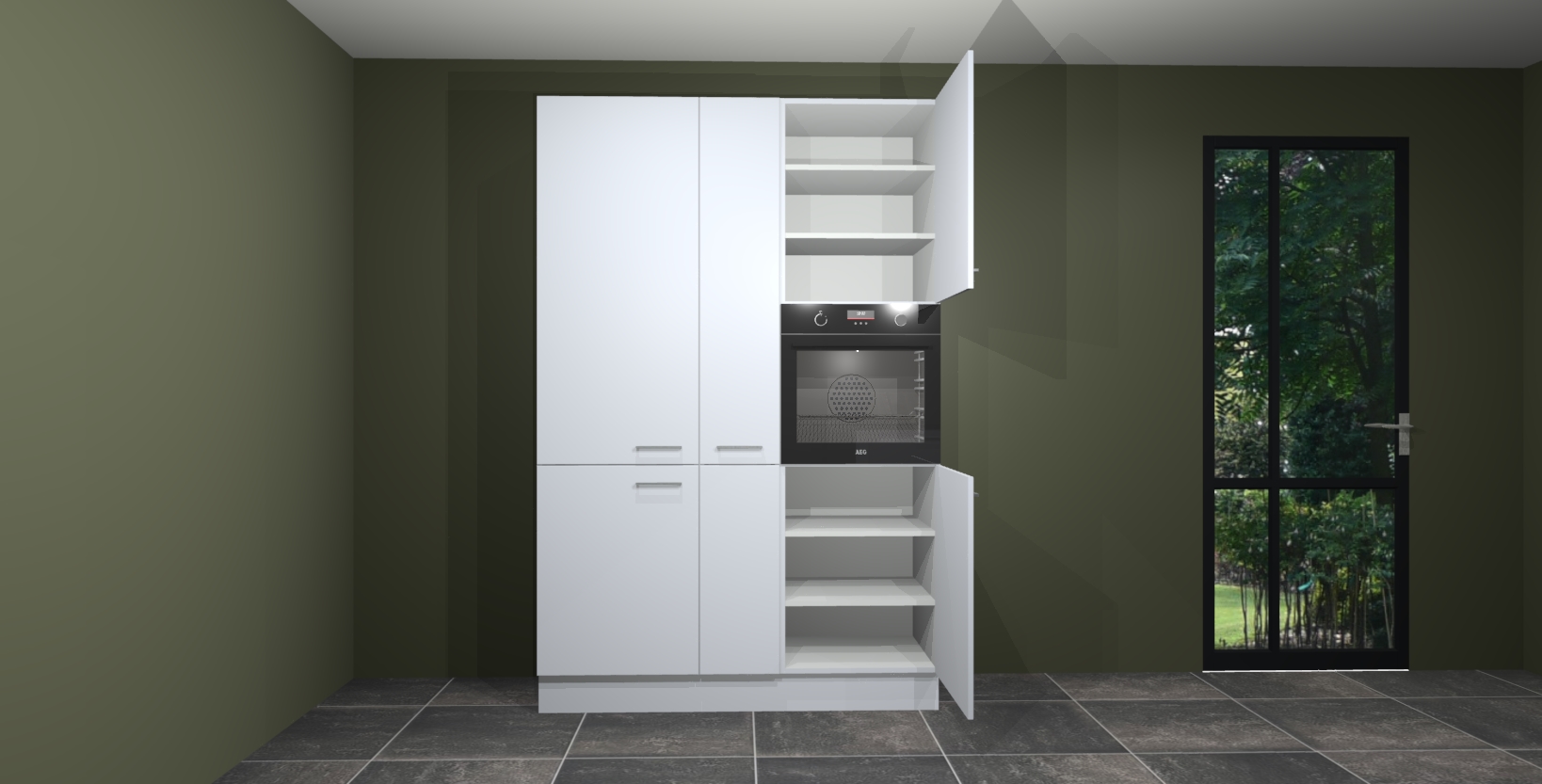 Met een modern, tijdloos design en ruime opslagruimte, zult u zich in no-time thuis voelen in uw nieuwe keuken. Uw leven wordt eenvoudiger met de soft-close deuren die voor het ultieme stille comfort zorgen - geen geluid dat u stoort terwijl u kookt. Ook is de keuken voorzien van 5 ingebouwde apparaten: een oven, inductie kookplaat, afzuigkap, vaatwasser en koelkast. Deze kunnen gemakkelijk na bestelling worden bijgewerkt naar AEG - waardoor uw luxe ervaring compleet is.