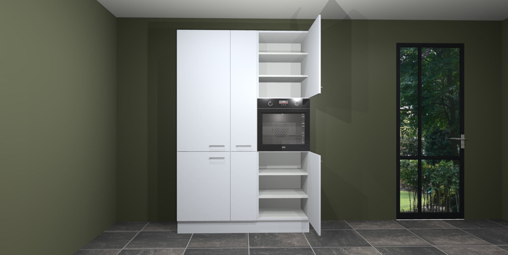 Met een modern, tijdloos design en ruime opslagruimte, zult u zich in no-time thuis voelen in uw nieuwe keuken. Uw leven wordt eenvoudiger met de soft-close deuren die voor het ultieme stille comfort zorgen - geen geluid dat u stoort terwijl u kookt. Ook is de keuken voorzien van 5 ingebouwde apparaten: een oven, inductie kookplaat, afzuigkap, vaatwasser en koelkast. Deze kunnen gemakkelijk na bestelling worden bijgewerkt naar AEG - waardoor uw luxe ervaring compleet is.