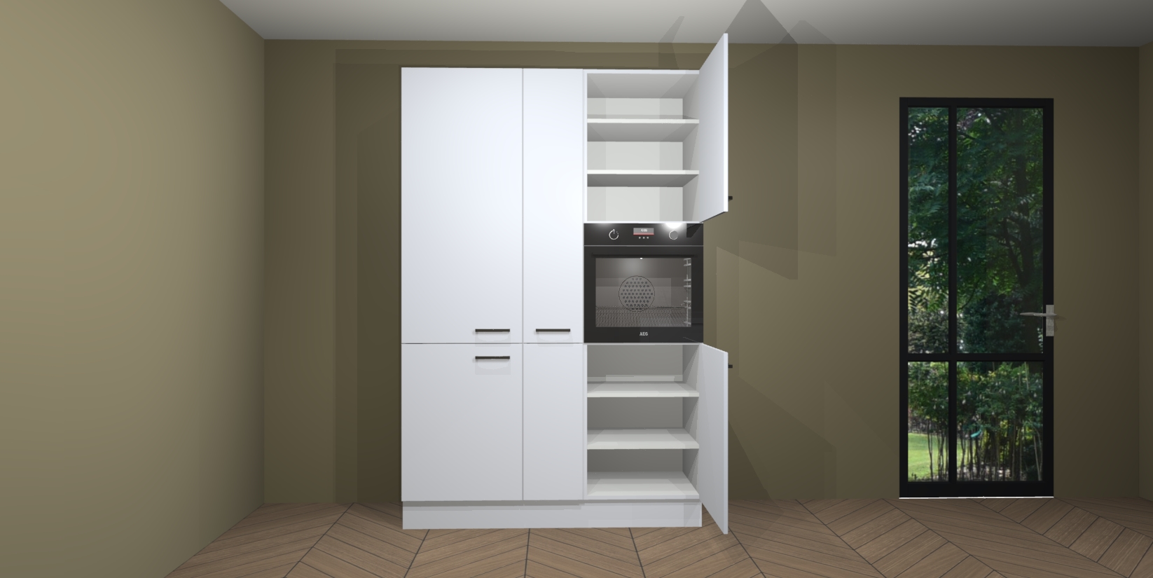 Met een modern, tijdloos design en ruime opslagruimte, zult u zich in no-time thuis voelen in uw nieuwe keuken. Uw leven wordt eenvoudiger met de soft-close deuren die voor het ultieme stille comfort zorgen - geen geluid dat u stoort terwijl u kookt. Ook is de keuken voorzien van 5 ingebouwde apparaten: een oven, inductie kookplaat, afzuigkap, vaatwasser en koelkast. Deze kunnen gemakkelijk na bestelling worden bijgewerkt naar AEG - waardoor uw luxe ervaring compleet is.
