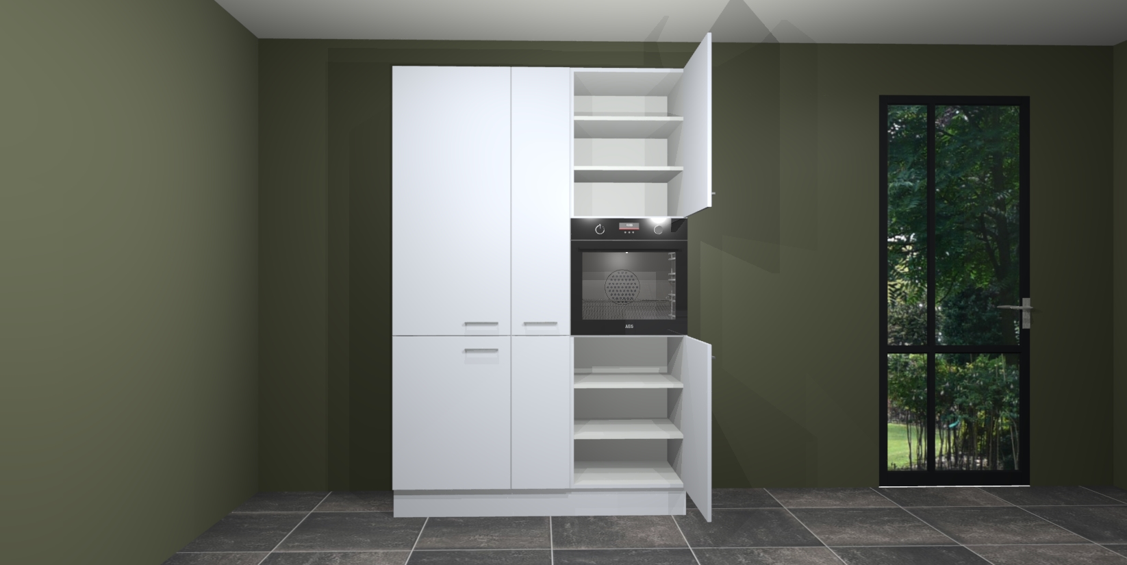 Met een modern, tijdloos design en ruime opslagruimte, zult u zich in no-time thuis voelen in uw nieuwe keuken. Uw leven wordt eenvoudiger met de soft-close deuren die voor het ultieme stille comfort zorgen - geen geluid dat u stoort terwijl u kookt. Ook is de keuken voorzien van 5 ingebouwde apparaten: een oven, inductie kookplaat, afzuigkap, vaatwasser en koelkast. Deze kunnen gemakkelijk na bestelling worden bijgewerkt naar AEG - waardoor uw luxe ervaring compleet is.