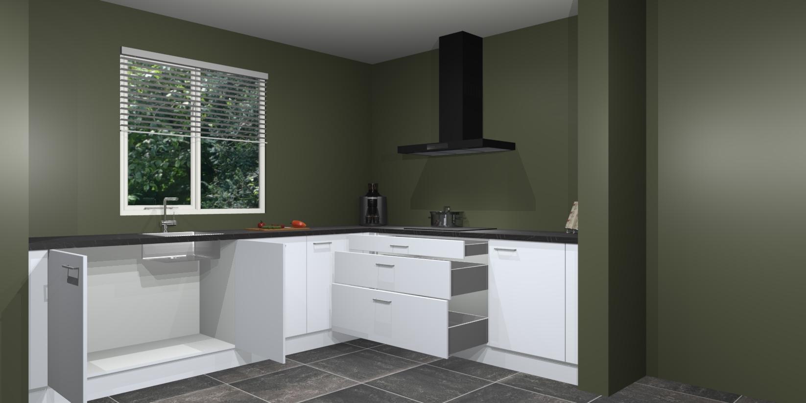 - Bij een hoekwerkblad zijn de hoeken in gevreesd en op maat gemaakt