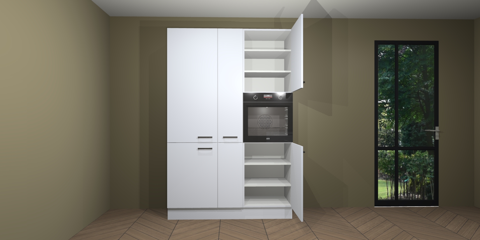 Met een modern, tijdloos design en ruime opslagruimte, zult u zich in no-time thuis voelen in uw nieuwe keuken. Uw leven wordt eenvoudiger met de soft-close deuren die voor het ultieme stille comfort zorgen - geen geluid dat u stoort terwijl u kookt. Ook is de keuken voorzien van 5 ingebouwde apparaten: een oven, inductie kookplaat, afzuigkap, vaatwasser en koelkast. Deze kunnen gemakkelijk na bestelling worden bijgewerkt naar AEG - waardoor uw luxe ervaring compleet is.
