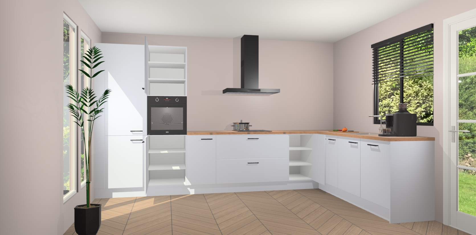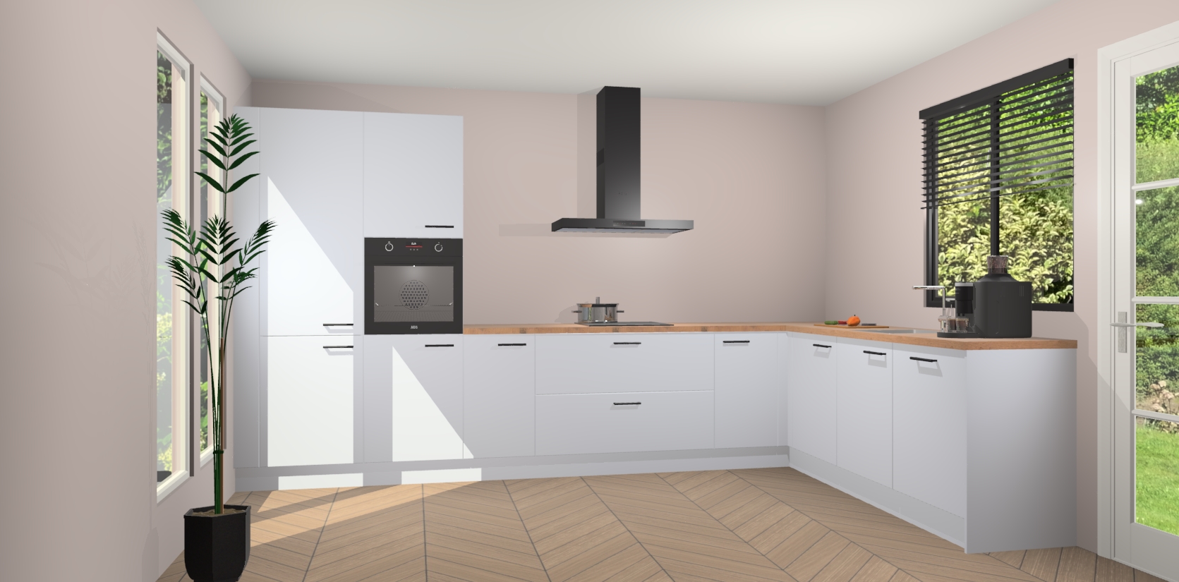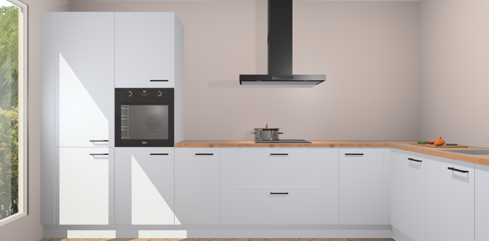 Met een modern, tijdloos design en ruime opslagruimte, zult u zich in no-time thuis voelen in uw nieuwe keuken. Uw leven wordt eenvoudiger met de soft-close deuren die voor het ultieme stille comfort zorgen - geen geluid dat u stoort terwijl u kookt. Ook is de keuken voorzien van 5 ingebouwde apparaten: een oven, inductie kookplaat, afzuigkap, vaatwasser en koelkast. Deze kunnen gemakkelijk na bestelling worden bijgewerkt naar AEG - waardoor uw luxe ervaring compleet is.