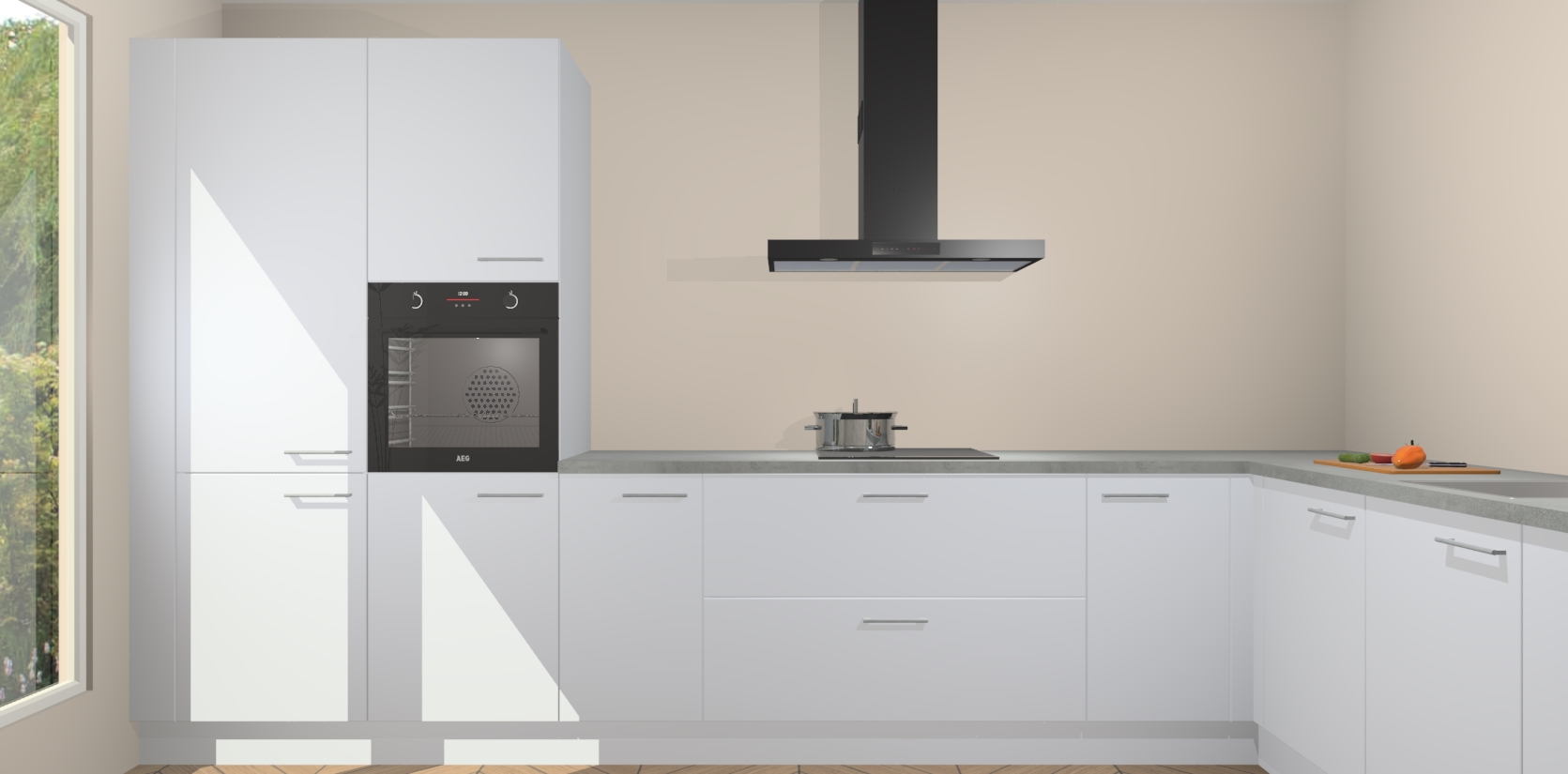 Met een modern, tijdloos design en ruime opslagruimte, zult u zich in no-time thuis voelen in uw nieuwe keuken. Uw leven wordt eenvoudiger met de soft-close deuren die voor het ultieme stille comfort zorgen - geen geluid dat u stoort terwijl u kookt. Ook is de keuken voorzien van 5 ingebouwde apparaten: een oven, inductie kookplaat, afzuigkap, vaatwasser en koelkast. Deze kunnen gemakkelijk na bestelling worden bijgewerkt naar AEG - waardoor uw luxe ervaring compleet is.