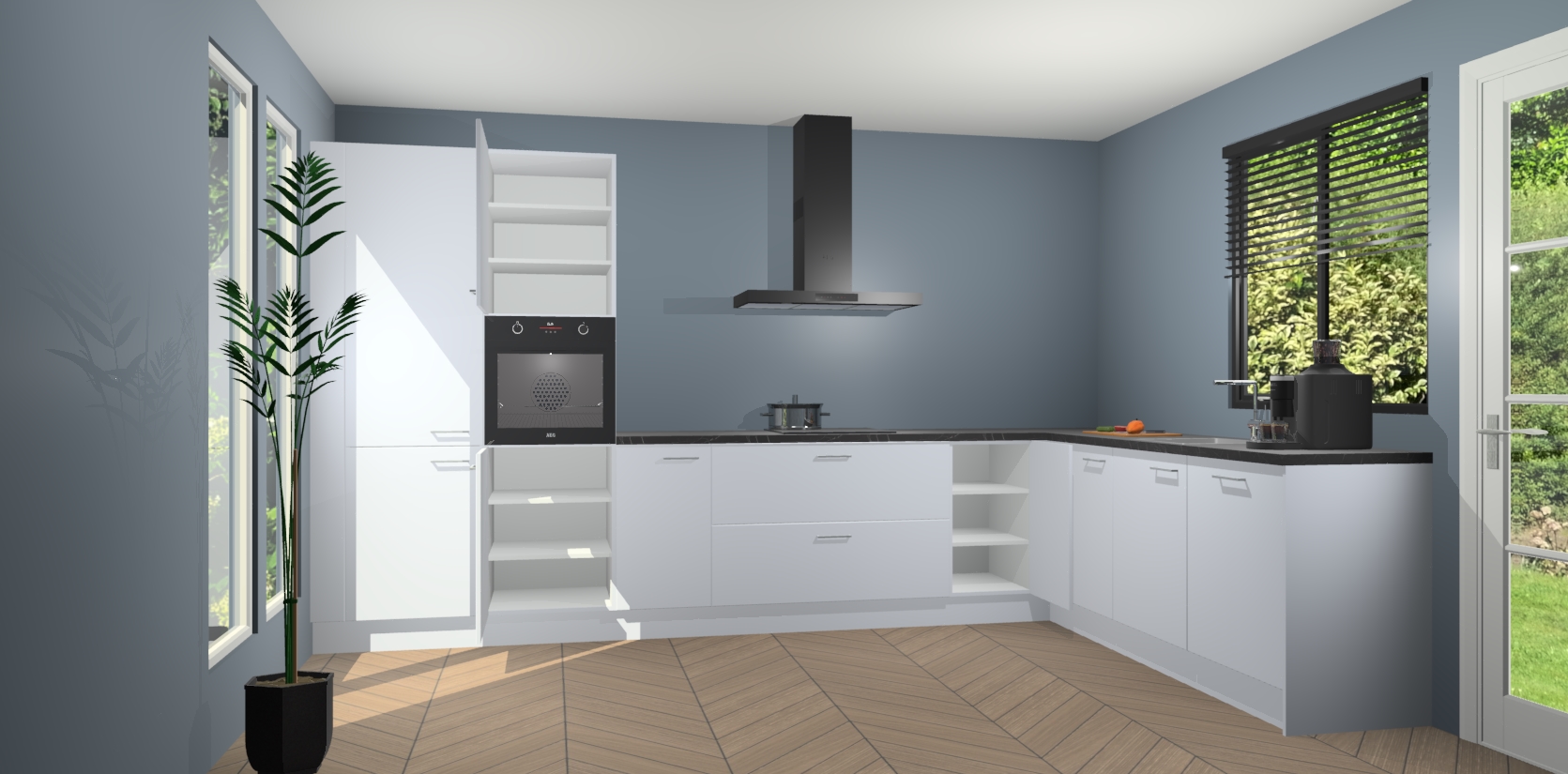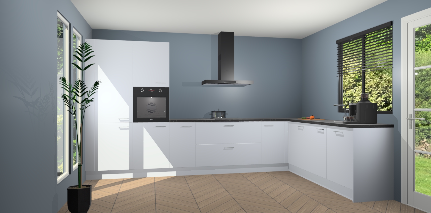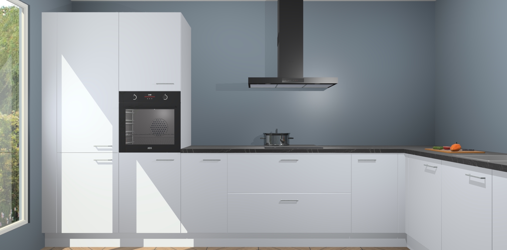 Met een modern, tijdloos design en ruime opslagruimte, zult u zich in no-time thuis voelen in uw nieuwe keuken. Uw leven wordt eenvoudiger met de soft-close deuren die voor het ultieme stille comfort zorgen - geen geluid dat u stoort terwijl u kookt. Ook is de keuken voorzien van 5 ingebouwde apparaten: een oven, inductie kookplaat, afzuigkap, vaatwasser en koelkast. Deze kunnen gemakkelijk na bestelling worden bijgewerkt naar AEG - waardoor uw luxe ervaring compleet is.