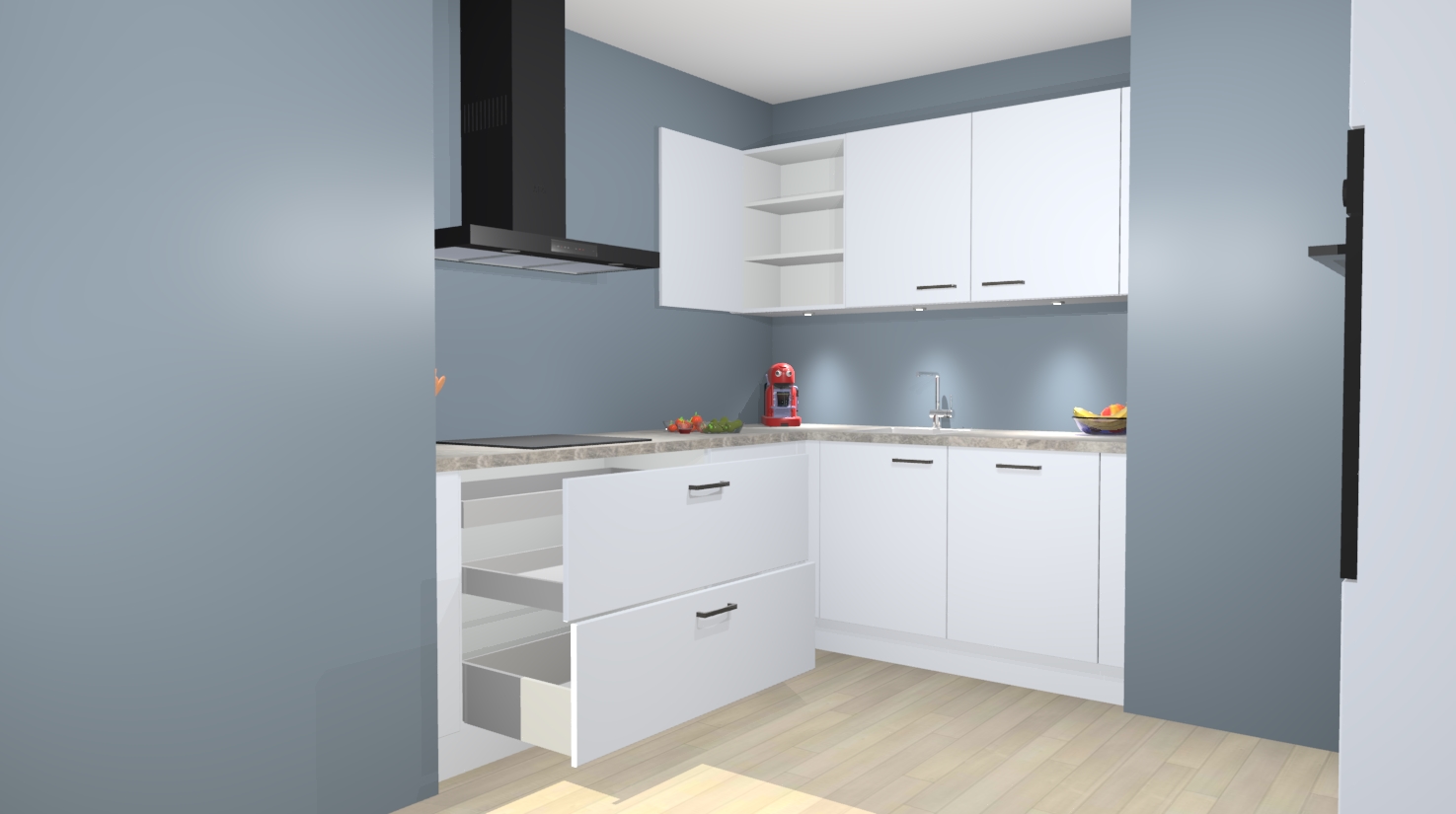 In deze box zijn alle kleuren verzameld van de deuren en werkbladen. Vraag de gratis kleurenbox aan en kijk thuis rustig verder!