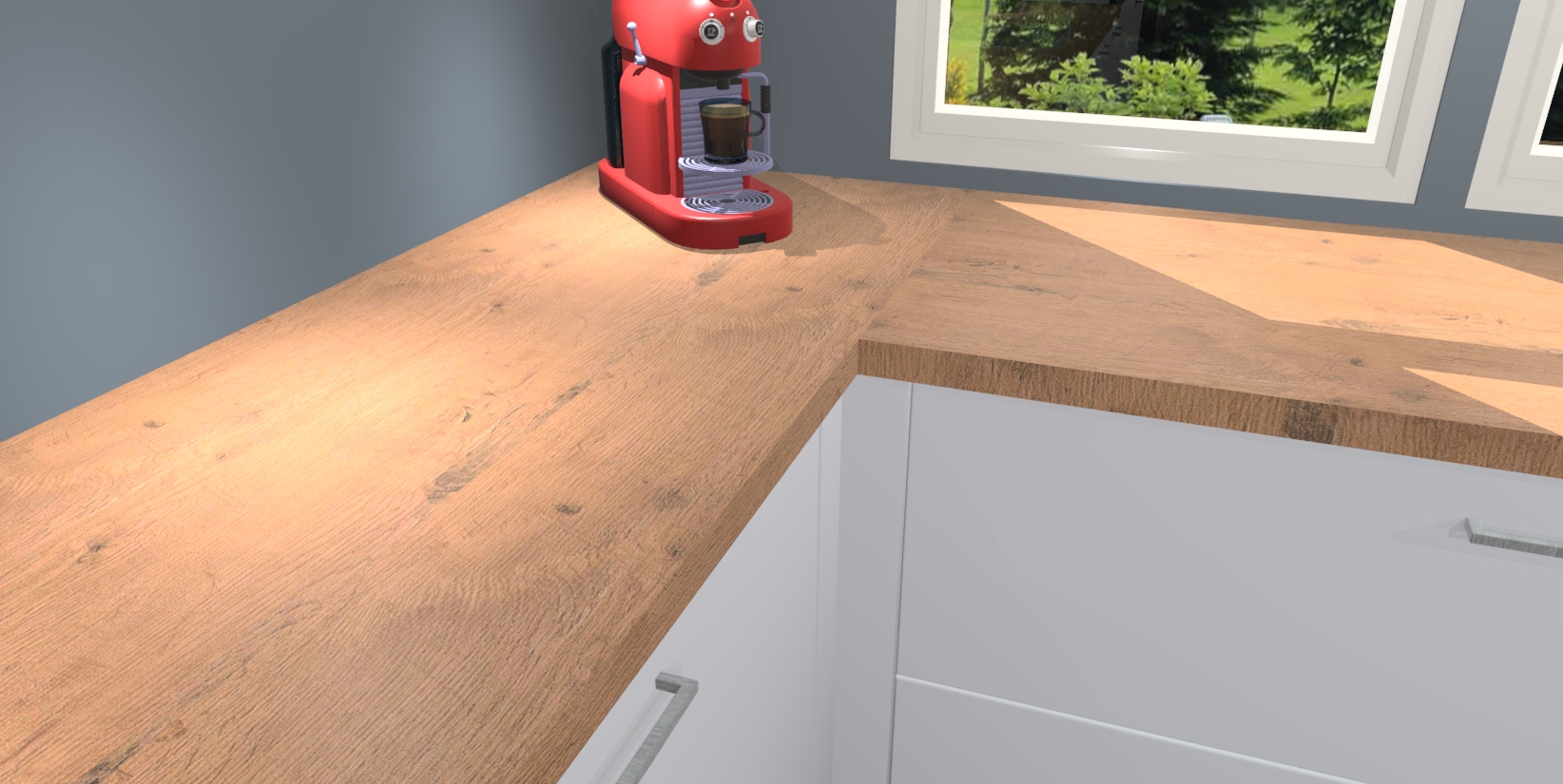- Bij een hoekwerkblad zijn de hoeken in gevreesd en op maat gemaakt