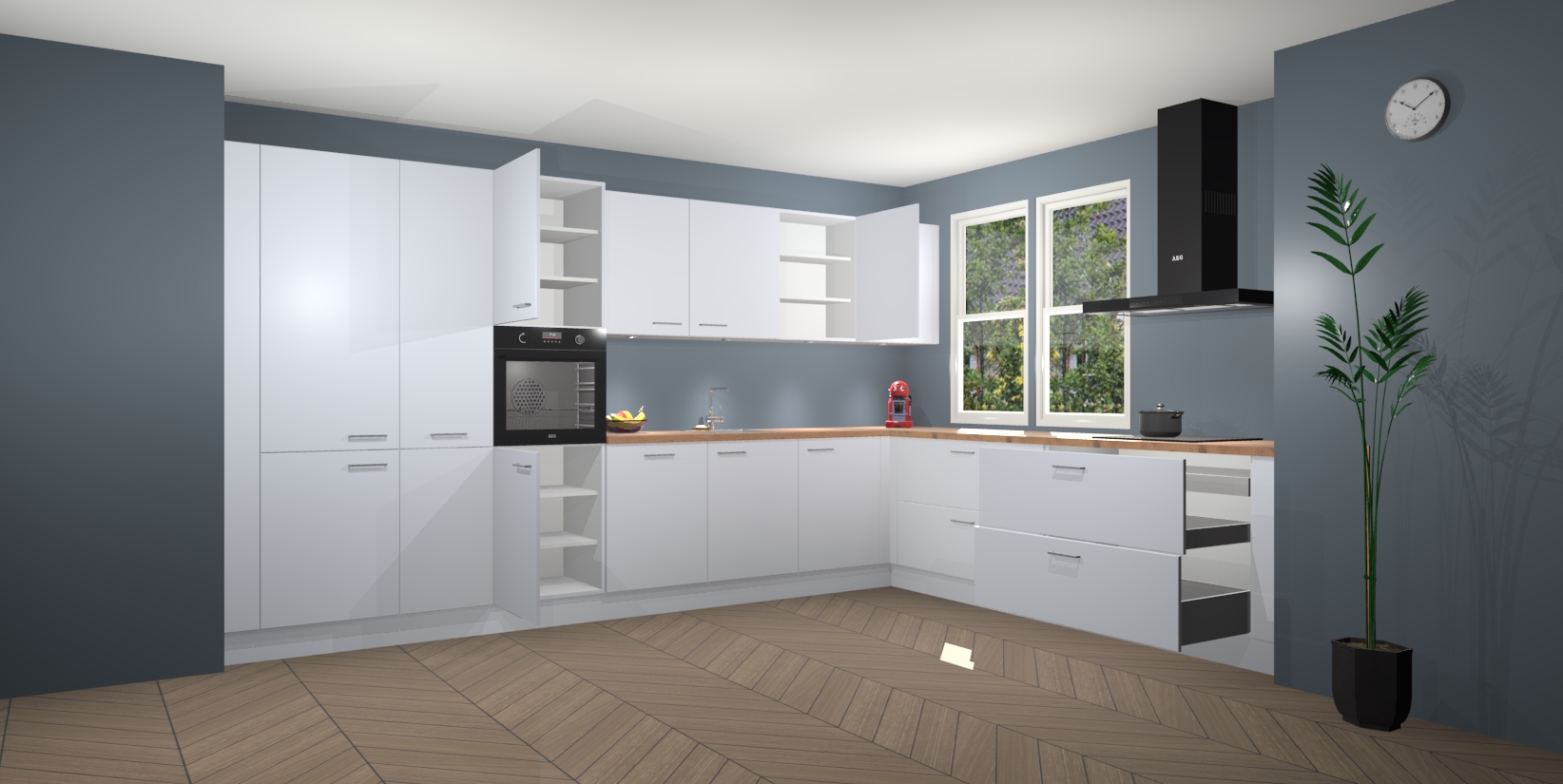 Door het stijlvolle, minimalistische design van de populairste keukens van dit moment te combineren met het gemak en de functionaliteit, heeft u veel opbergruimte en een opgeruimd werkblad. Met de extra bonus van softclose deuren biedt deze witte keuken een eigentijdse maar functionele omgeving voor al uw culinaire behoeften.
