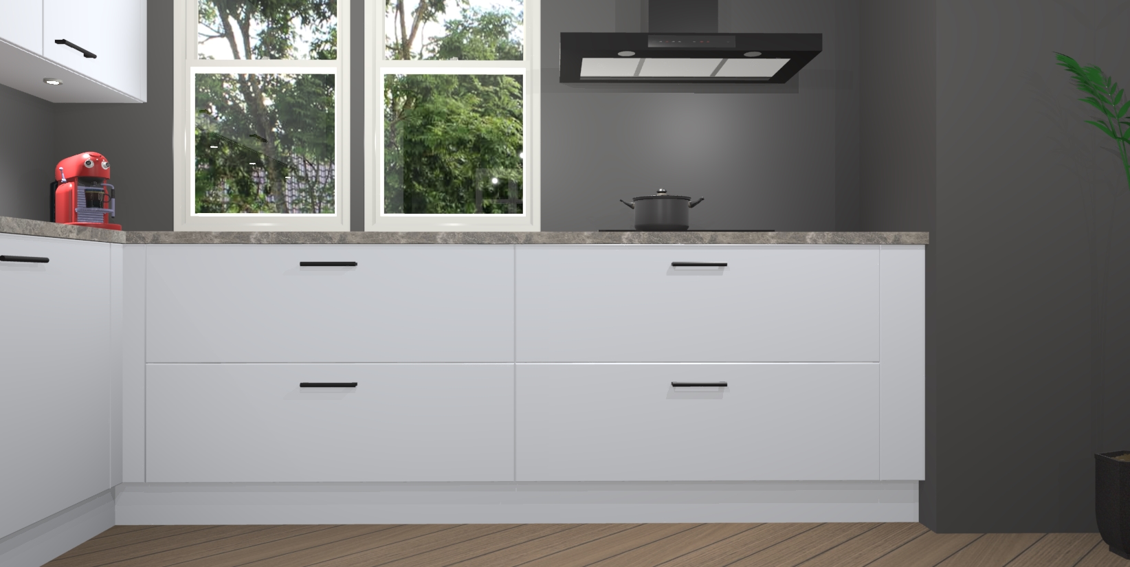 Inclusief plinten, stelpoten en werkblad