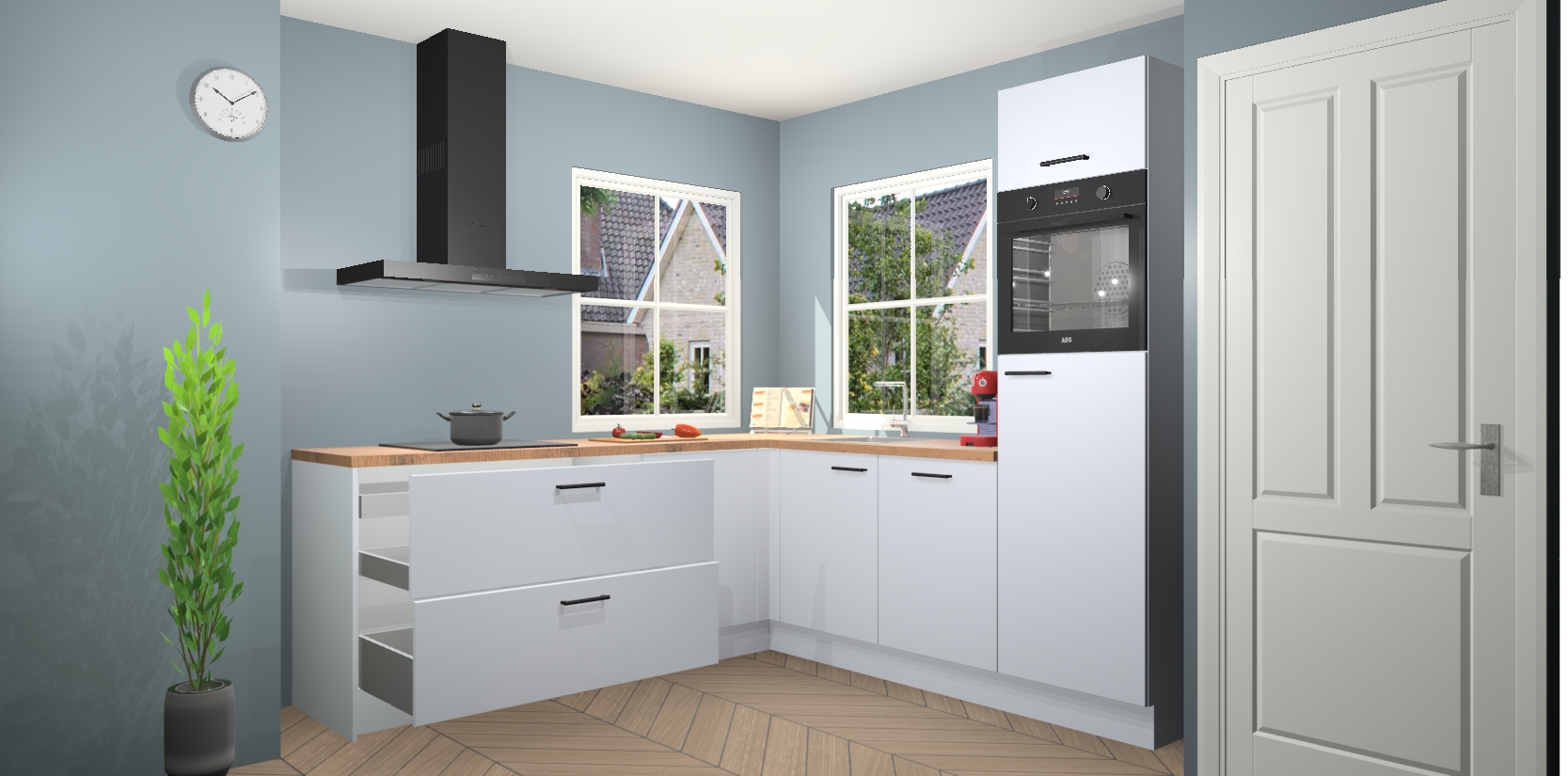 In deze box zijn alle kleuren verzameld van de deuren en werkbladen. Vraag de gratis kleurenbox aan en kijk thuis rustig verder!