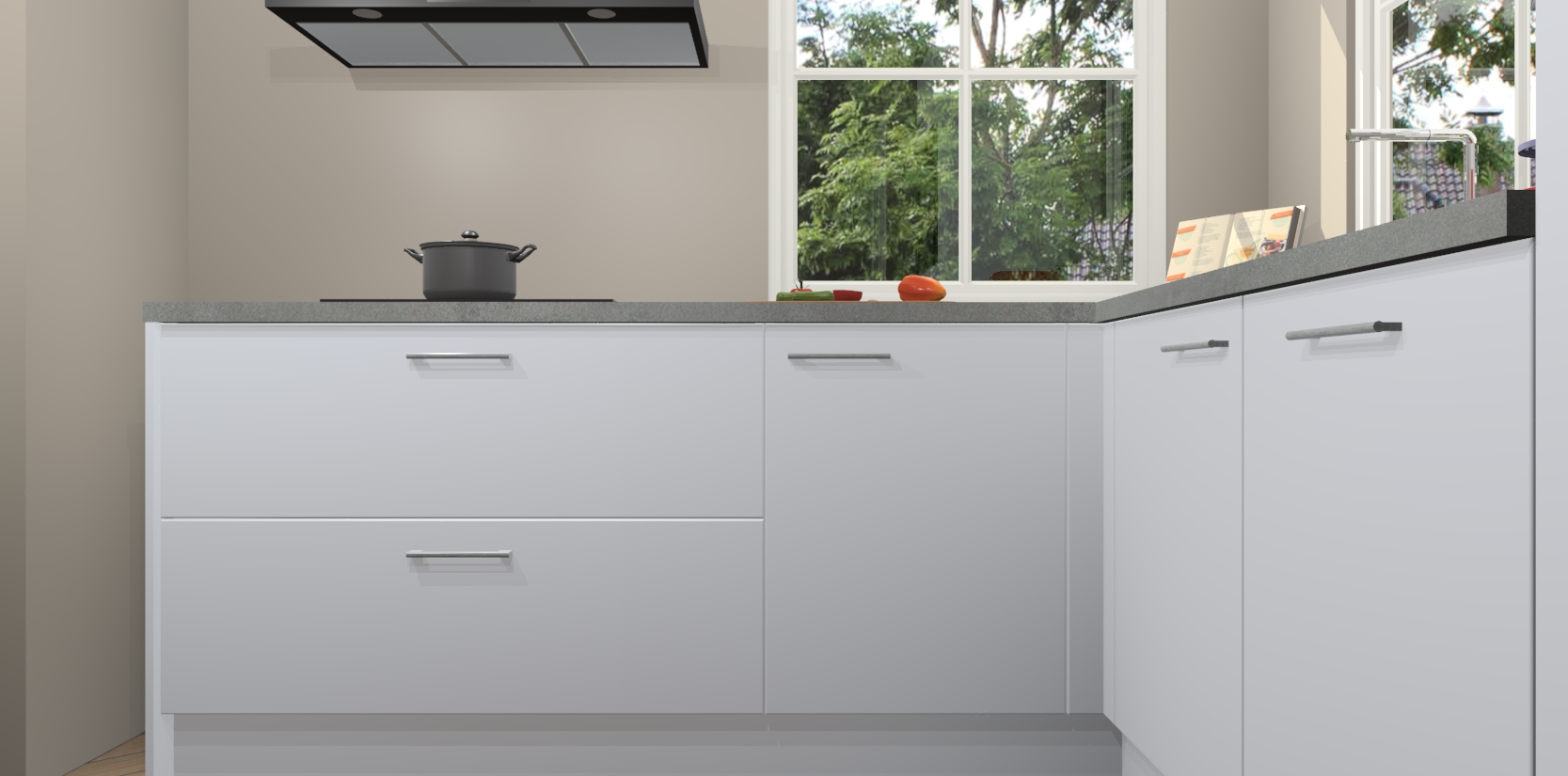In deze box zijn alle kleuren verzameld van de deuren en werkbladen. Vraag de gratis kleurenbox aan en kijk thuis rustig verder!
