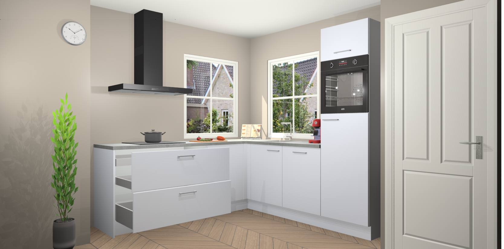 De Sneeuwwitte keuken Pai bevat vijf essentiële inbouwapparaten - een oven, inductiekookplaat, afzuigkap, vaatwasser en koelkast - zodat u er na levering meteen in kunt. Voor de slimme kopers die weten dat apparaten vaak het verschil kunnen maken tussen functioneel en luxueus, bieden we eenvoudige upgradeopties naar AEG, van oven naar combimagnetron na bestelling of naar een kookplaat met geïntrigeerde afzuiging. En met onze vaste lage prijs en snelle levering binnen zeven weken vanaf de orderbevestiging hoeft u zich geen zorgen te maken over verborgen kosten of lange levertijden die uw droomkeuken kunnen vertragen.