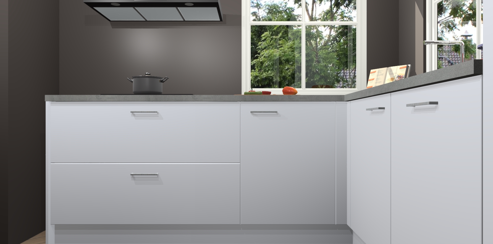 In deze box zijn alle kleuren verzameld van de deuren en werkbladen. Vraag de gratis kleurenbox aan en kijk thuis rustig verder!
