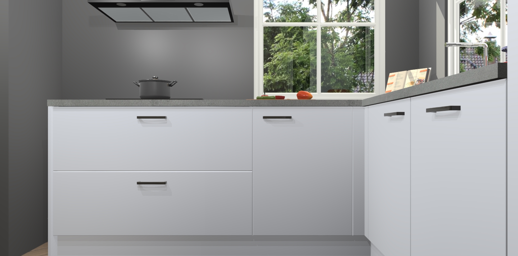 In deze box zijn alle kleuren verzameld van de deuren en werkbladen. Vraag de gratis kleurenbox aan en kijk thuis rustig verder!