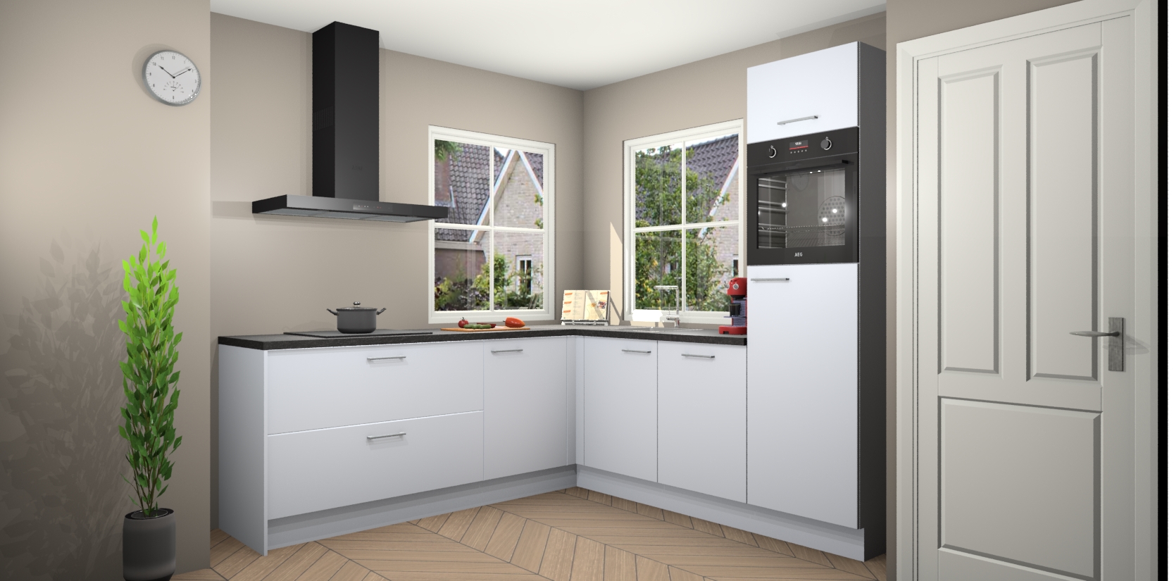 De Sneeuwwitte keuken Pai bevat vijf essentiële inbouwapparaten - een oven, inductiekookplaat, afzuigkap, vaatwasser en koelkast - zodat u er na levering meteen in kunt. Voor de slimme kopers die weten dat apparaten vaak het verschil kunnen maken tussen functioneel en luxueus, bieden we eenvoudige upgradeopties naar AEG, van oven naar combimagnetron na bestelling of naar een kookplaat met geïntrigeerde afzuiging. En met onze vaste lage prijs en snelle levering binnen zeven weken vanaf de orderbevestiging hoeft u zich geen zorgen te maken over verborgen kosten of lange levertijden die uw droomkeuken kunnen vertragen.