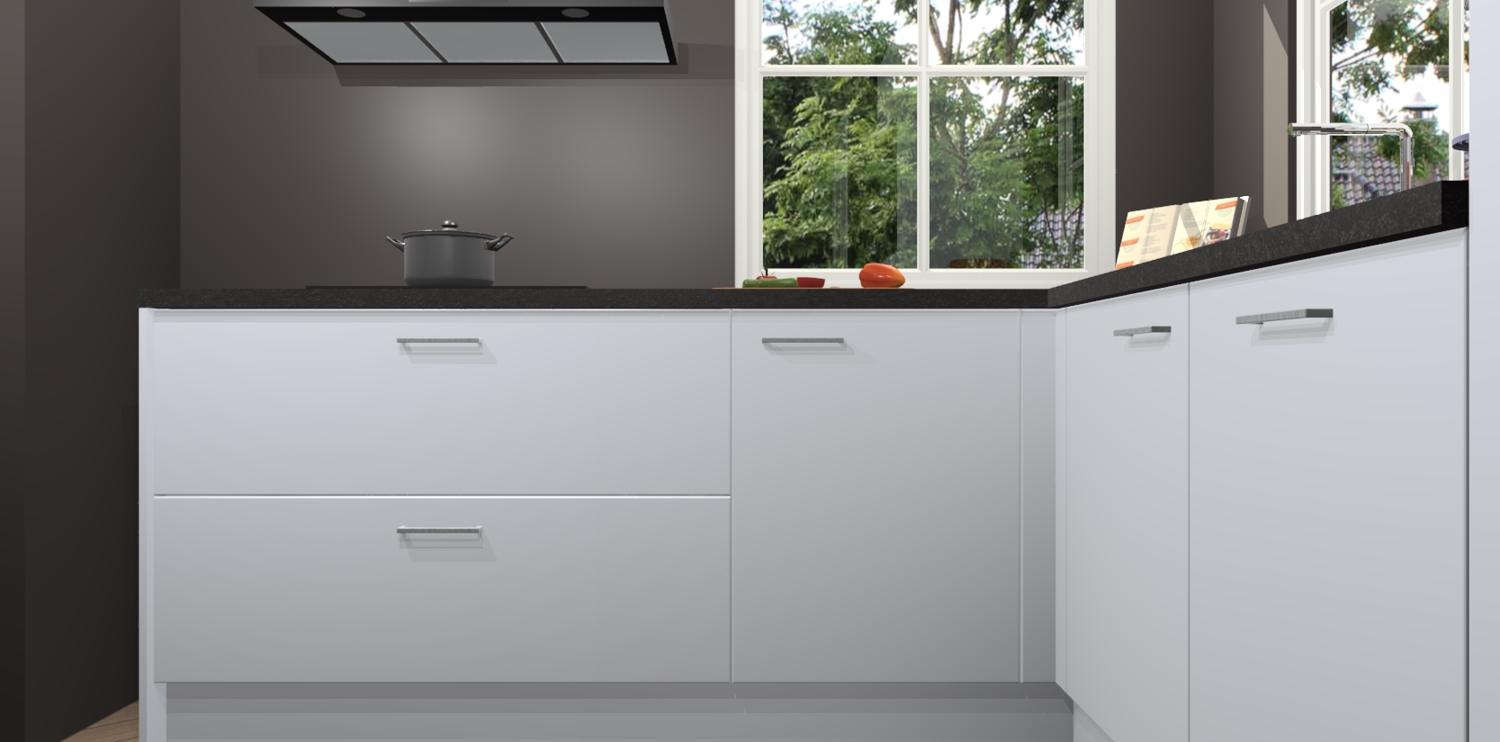 In deze box zijn alle kleuren verzameld van de deuren en werkbladen. Vraag de gratis kleurenbox aan en kijk thuis rustig verder!