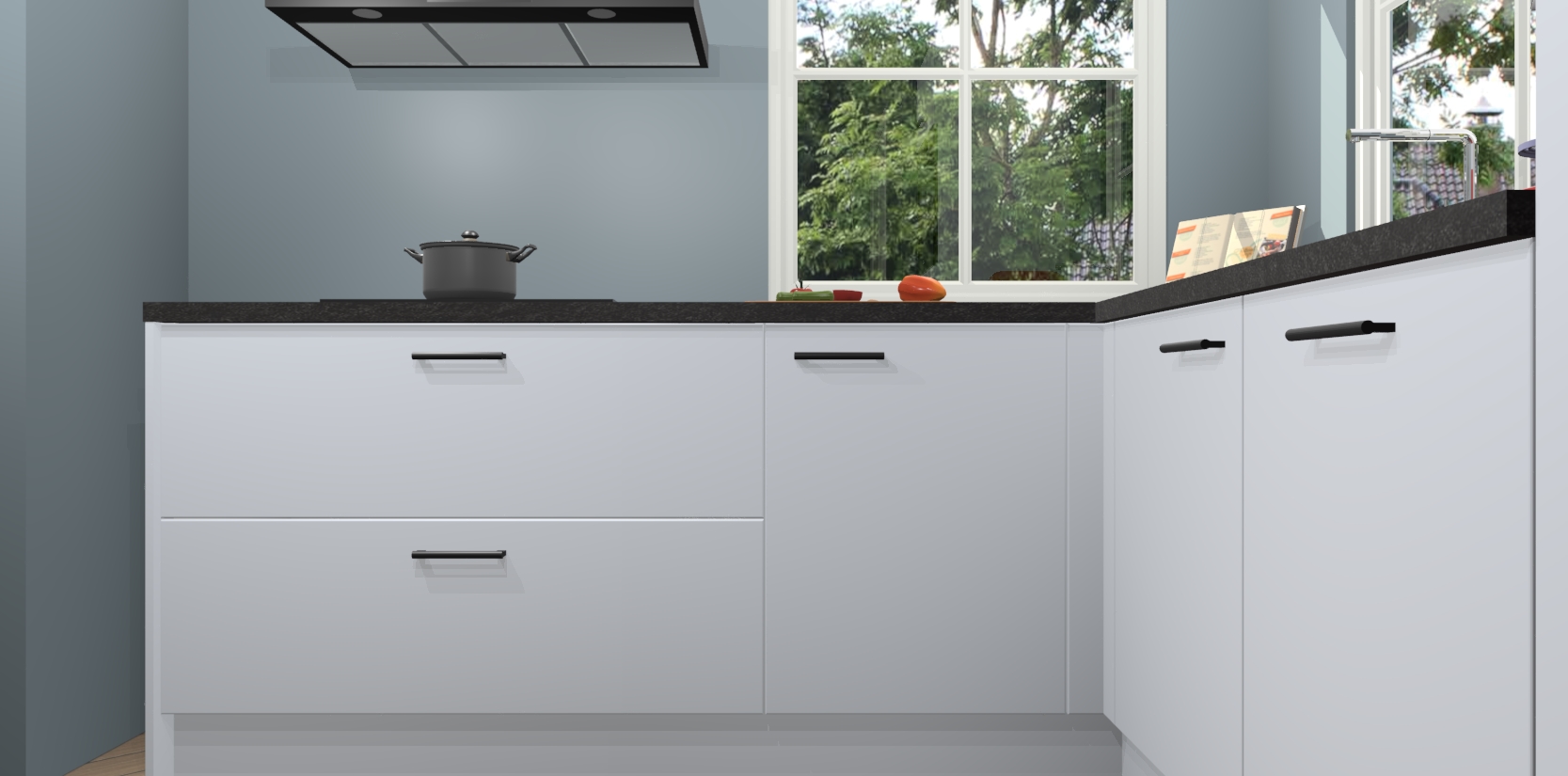 In deze box zijn alle kleuren verzameld van de deuren en werkbladen. Vraag de gratis kleurenbox aan en kijk thuis rustig verder!