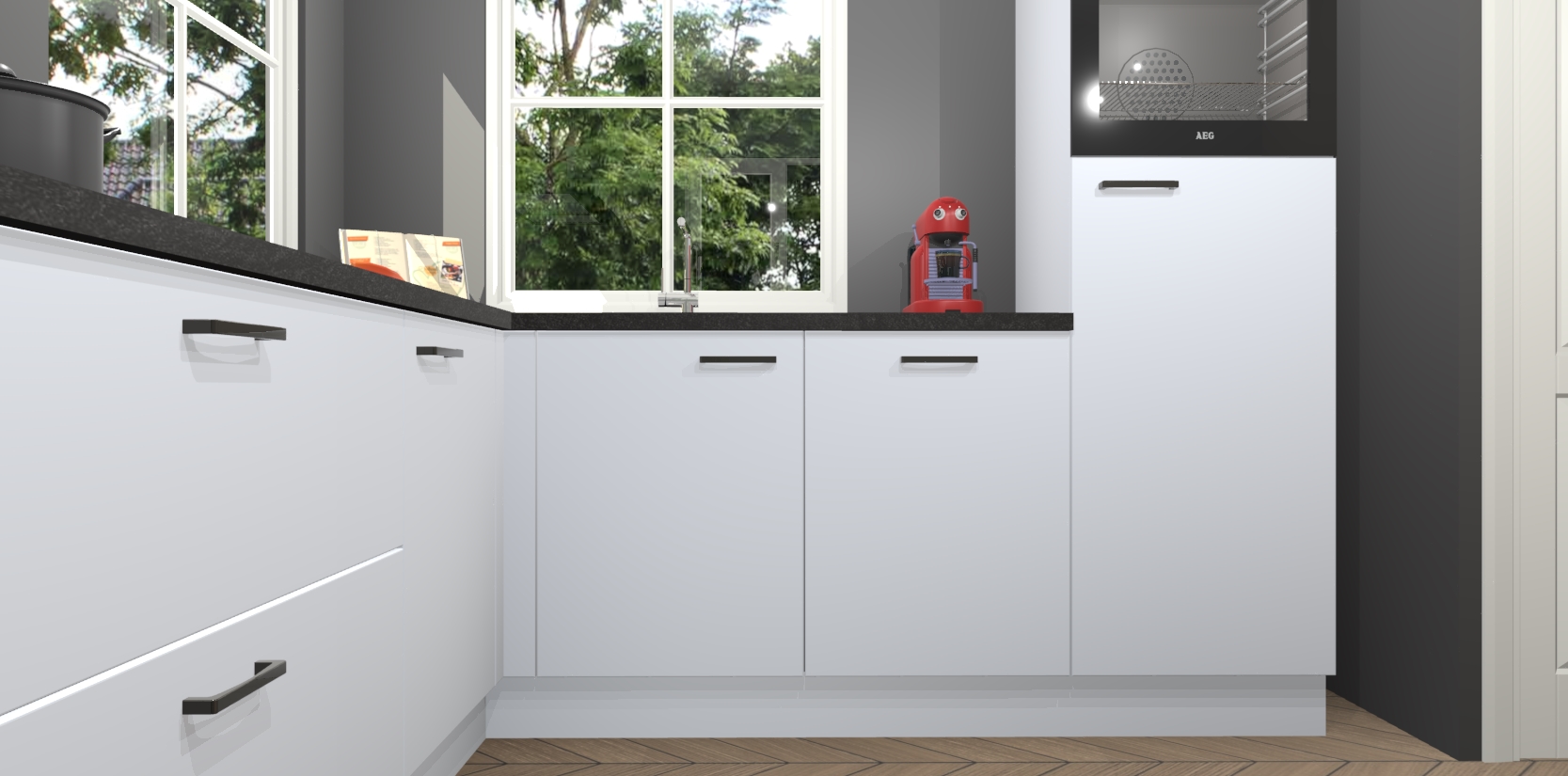 In deze box zijn alle kleuren verzameld van de deuren en werkbladen. Vraag de gratis kleurenbox aan en kijk thuis rustig verder!