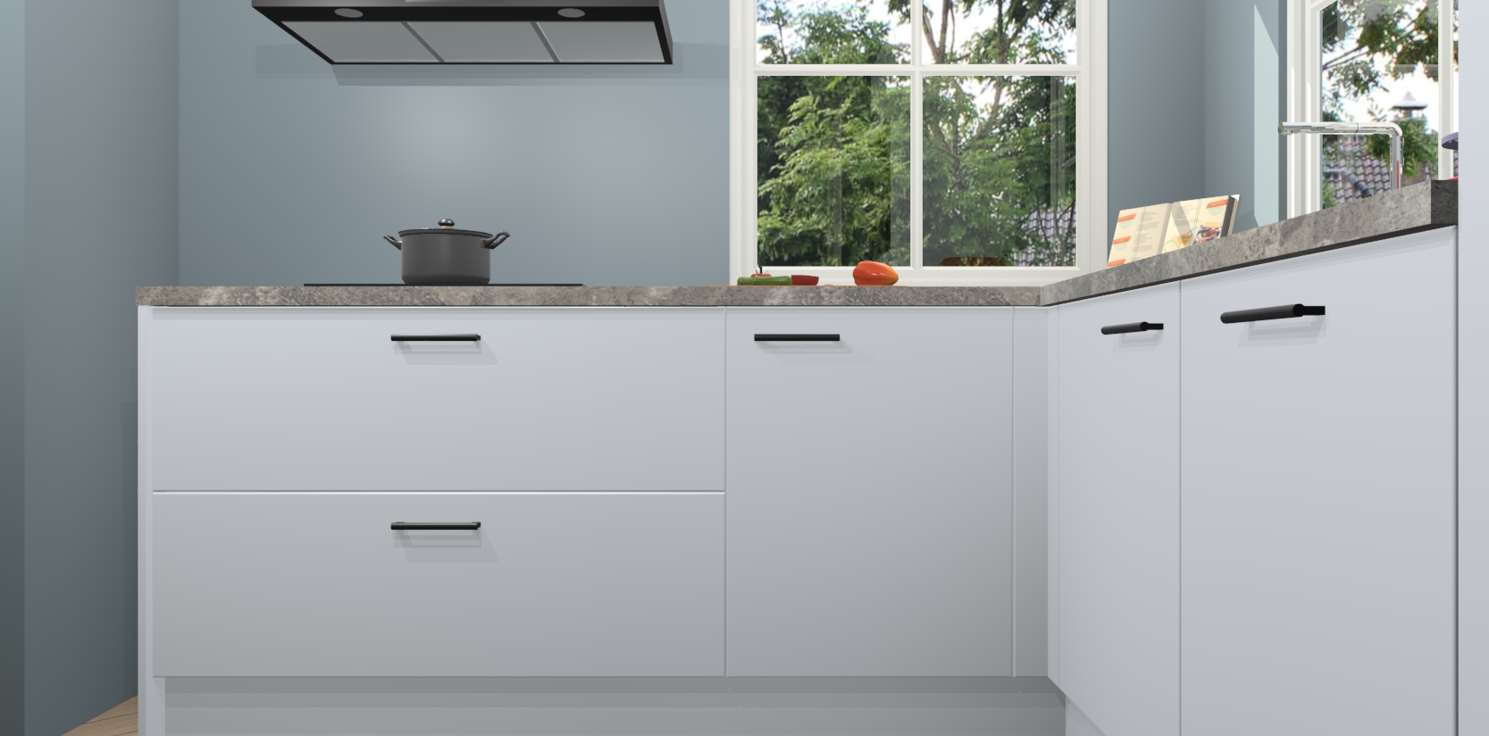 In deze box zijn alle kleuren verzameld van de deuren en werkbladen. Vraag de gratis kleurenbox aan en kijk thuis rustig verder!