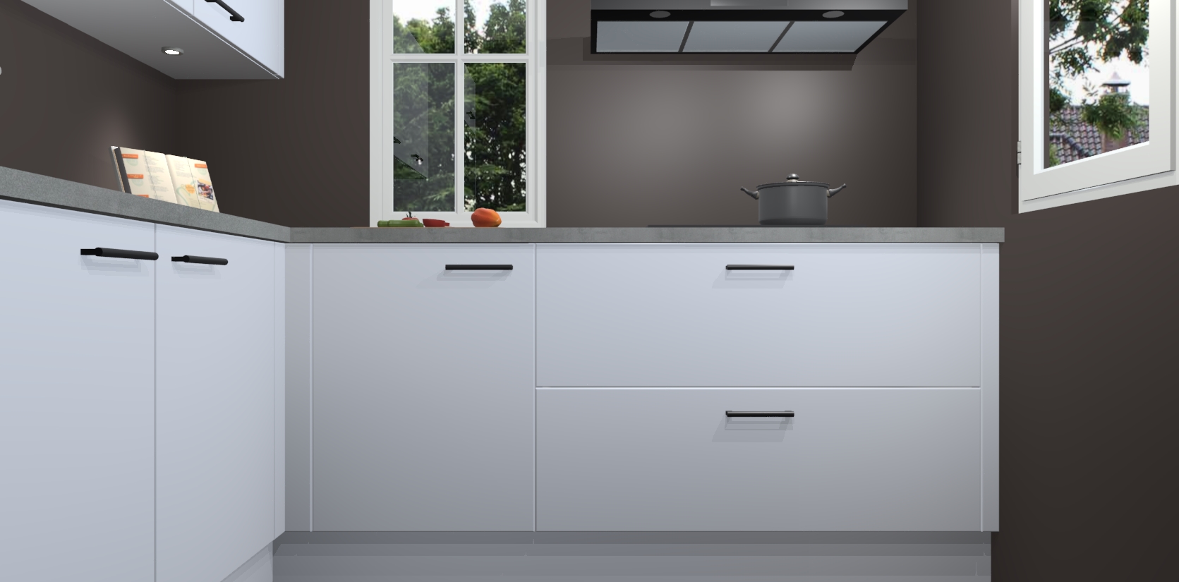 In deze box zijn alle kleuren verzameld van de deuren en werkbladen. Vraag de gratis kleurenbox aan en kijk thuis rustig verder!